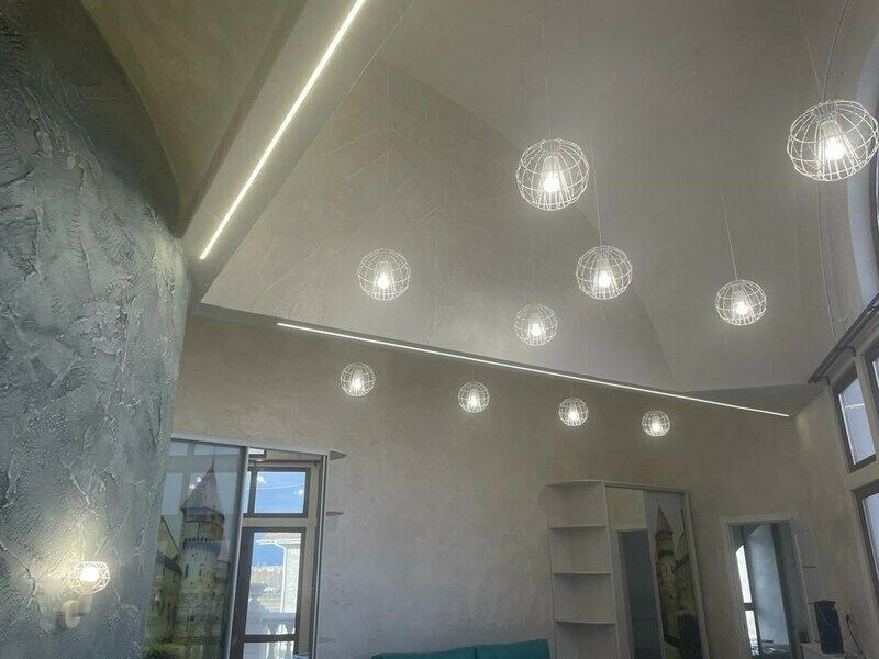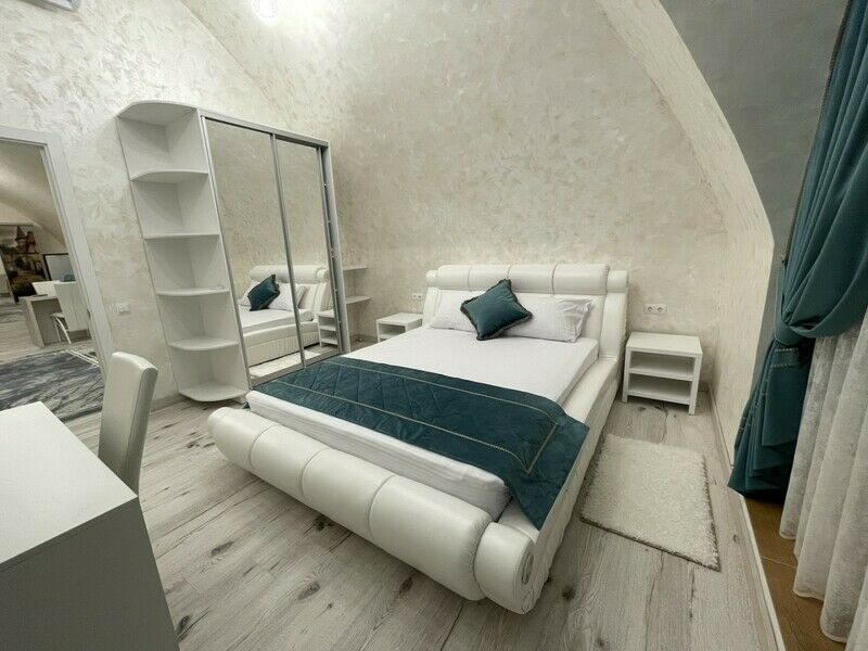 Комната располагается на 3-м этаже. Современный дизайн с круглым потолком (стены переходят в потолок). Одна спальная комната и большой зал с двумя диванами - большой и маленький (диваны раскладываются, спальное место 160х200 см и 90х200см ). В спальне - сплит-система, в зале - кассетный кондиционер.