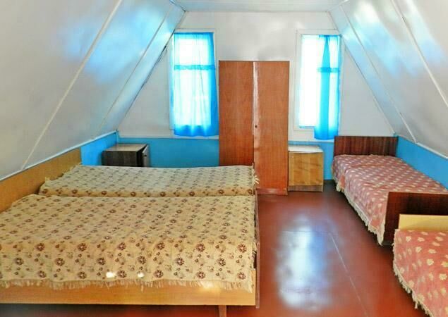 Помимо жилой комнаты, в домике также есть маленькая прихожая. Умывальник, горячий душ и туалет находятся на территории базы отдыха.