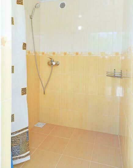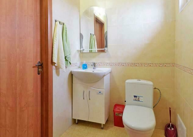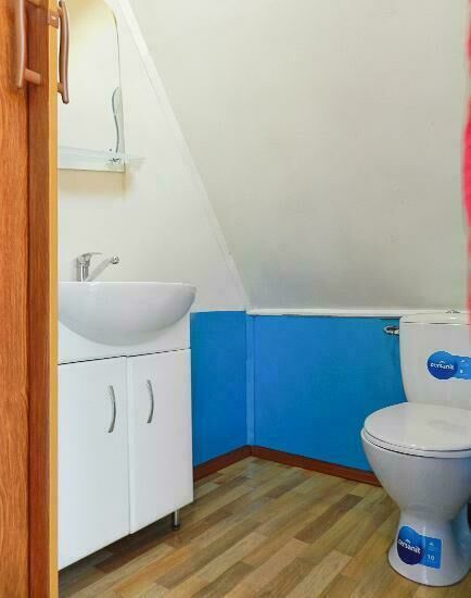 Помимо жилой комнаты, в домике также есть маленькая прихожая и санузел (туалет и умывальник). Горячий душ находится на территории базы отдыха.