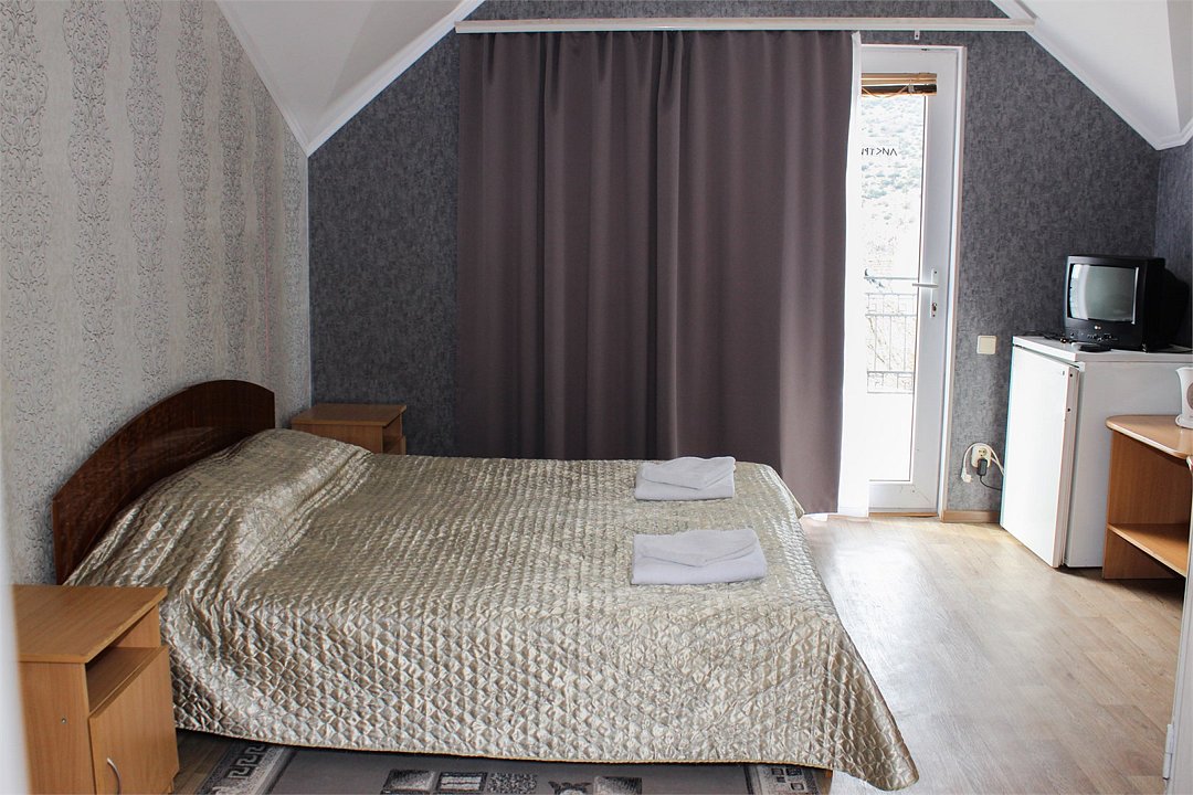 Спальные места: двуспальная кровать и раскладной двухместный диван. С балкона открывается чудный вид на Балаклавскую бухту и Генуэзские башни. Горячая и холодная вода круглосуточно.