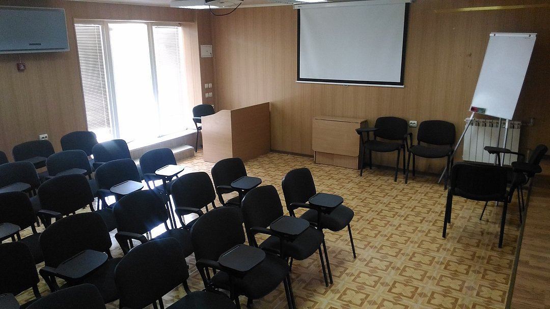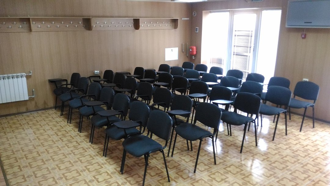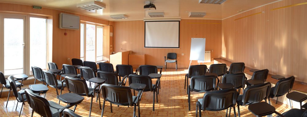 В зале есть проектор, интерактивная доска, флипчарт, система громкой связи с микрофоном и кондиционер. По запросу гостиница может организовать кофе-брейки, фуршеты и банкеты.