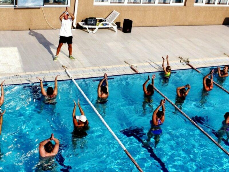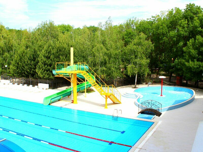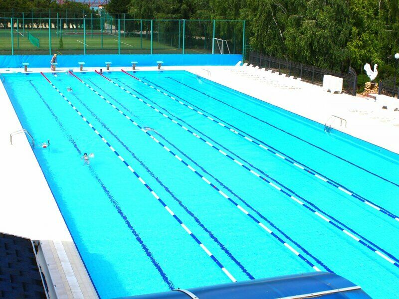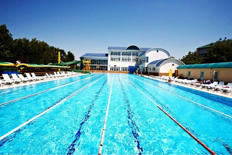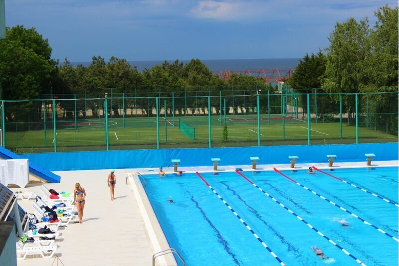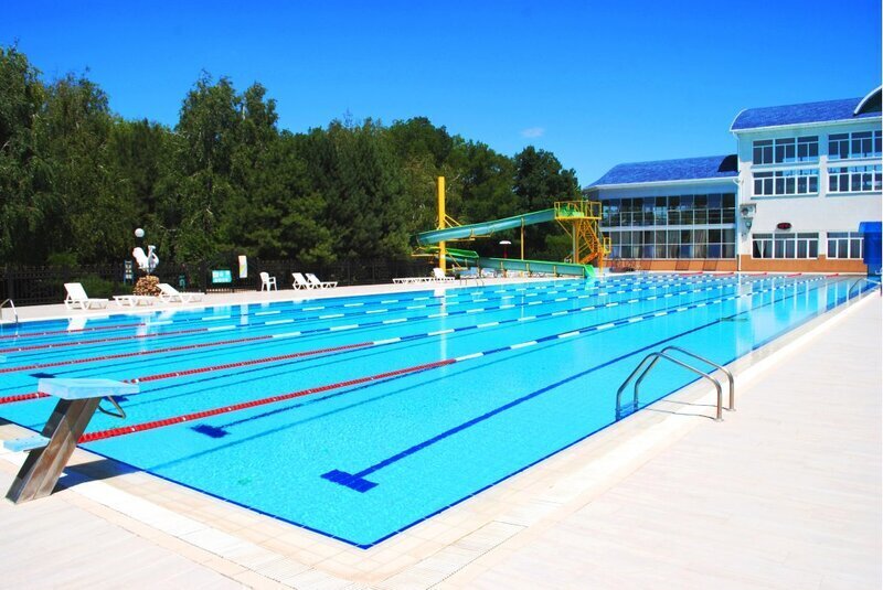 - Наличие 3 бассейнов: профессиональный 50-метровый подогреваемый плавательный бассейн (6 дорожек), для самых маленьких бассейн и для детей постарше с горками (глубина 70 см).