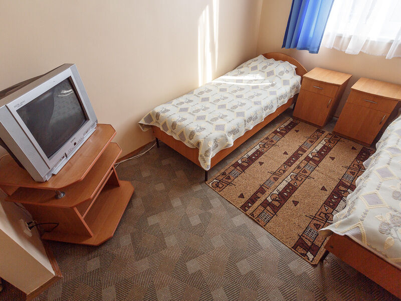 Пятиэтажный корпус №1, оборудованный лифтом, расположен в 130 метрах от моря напротив столовой. Номера 2-местные полулюксы с балконами, оборудованы ванными комнатами с душевыми кабинами, кондиционерами, телевизорами, холодильниками.