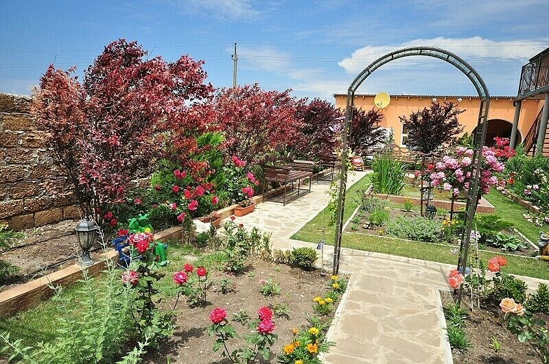Гостевой дом "La Fleur" располагает 19 номерами категории "полулюкс", каждый из которых укомплектован необходимой мебелью и современной бытовой техникой: кондиционером, холодильником, телевизором. Для Вашего удобства рядом с номерами расположены места для отдыха на свежем воздухе. Территория гостевого дома озеленена, украшена розовыми кустарниками и декоративными арками.