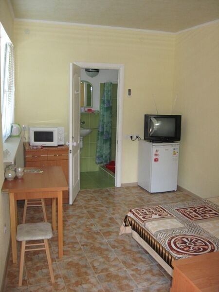 В каждом номере – постельное белье, санузел с душем, есть возможность самостоятельного приготовления пищи (вся посуда есть), холодильник, кондиционер (зима-лето), ТВ, чайник, утюг. Вода холодная и горячая постоянно.