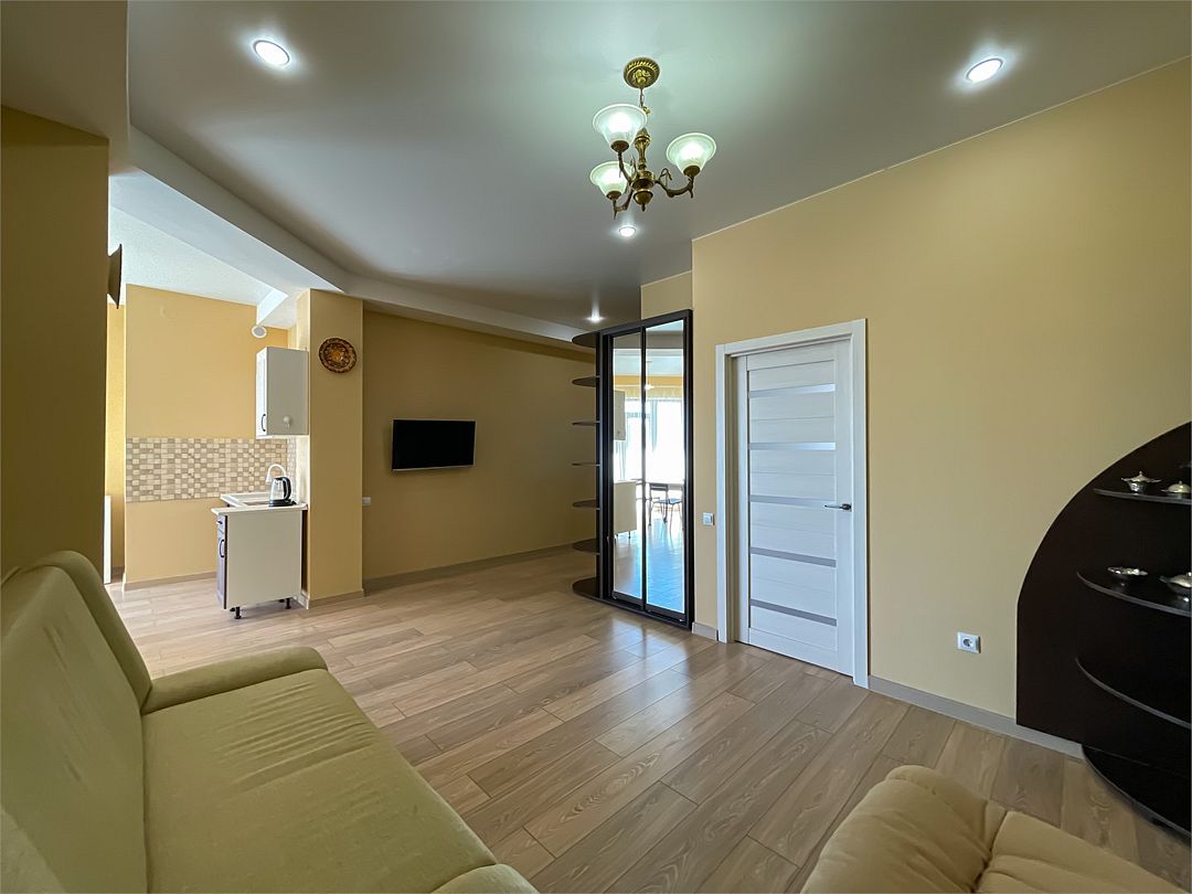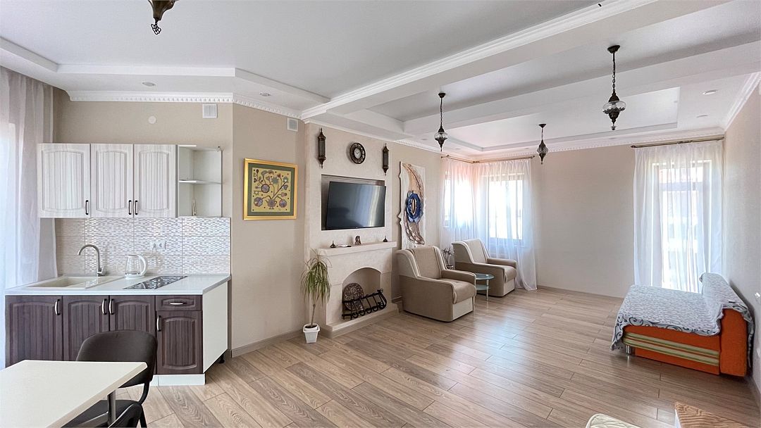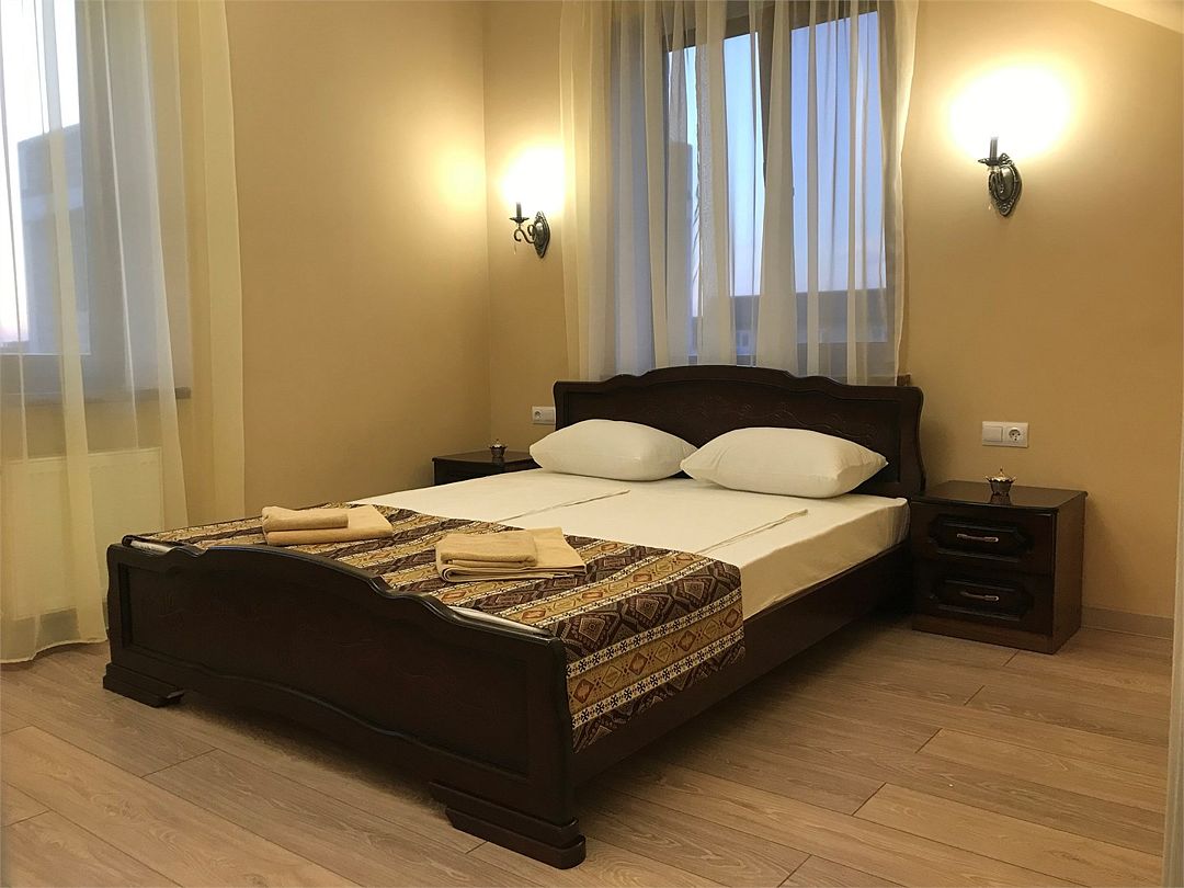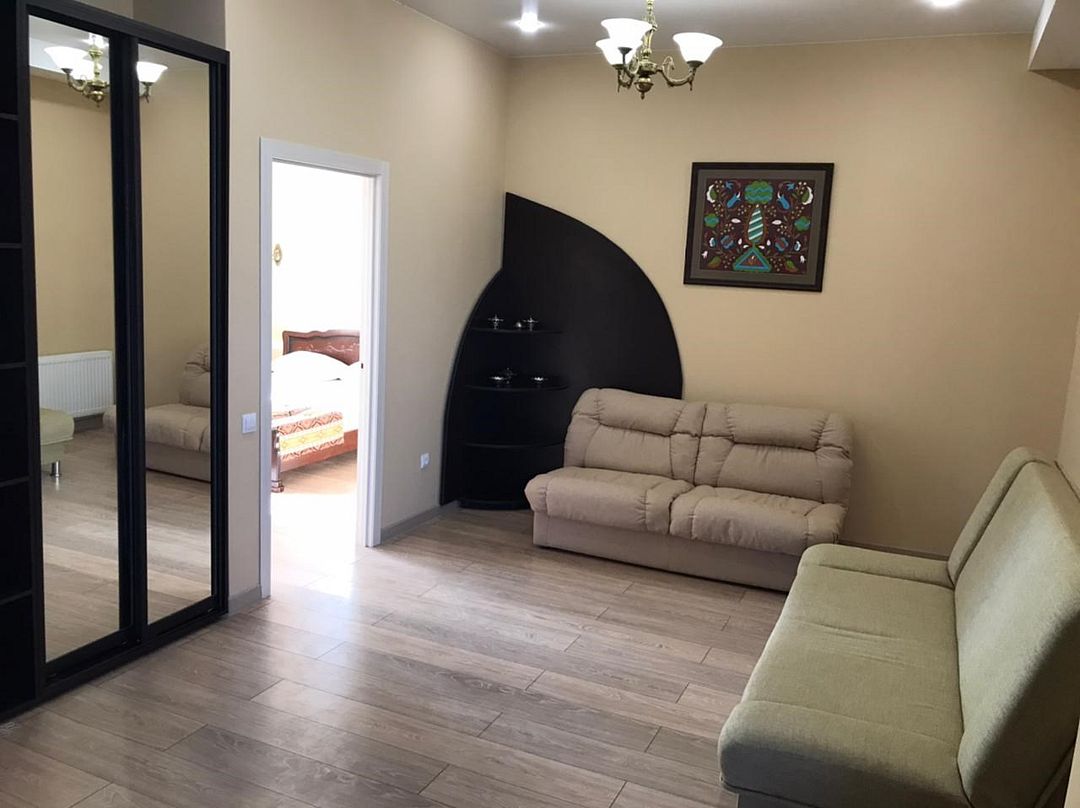 Двухкомнатные апартаменты в современном стиле. Оборудованная кухня , собственная ванная комната с душевой кабиной, туалетом и умывальником к вашим услугам. Мы позаботились о каждой мелочи для Вашего удобства.Услуги и удобства