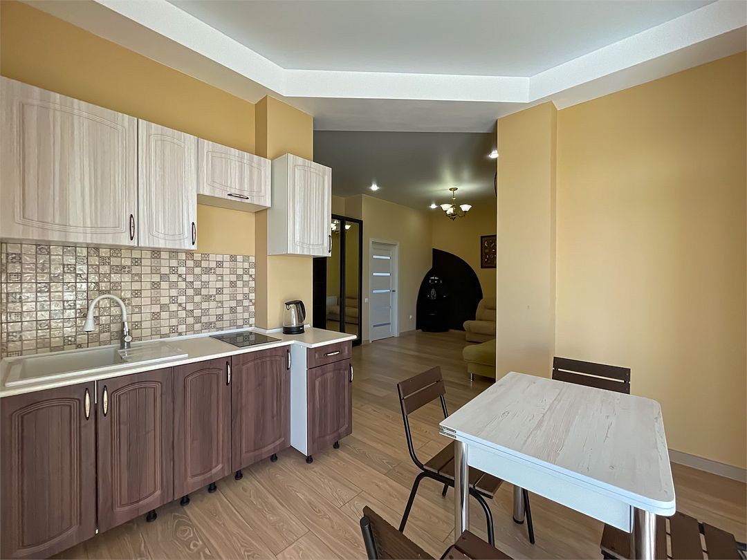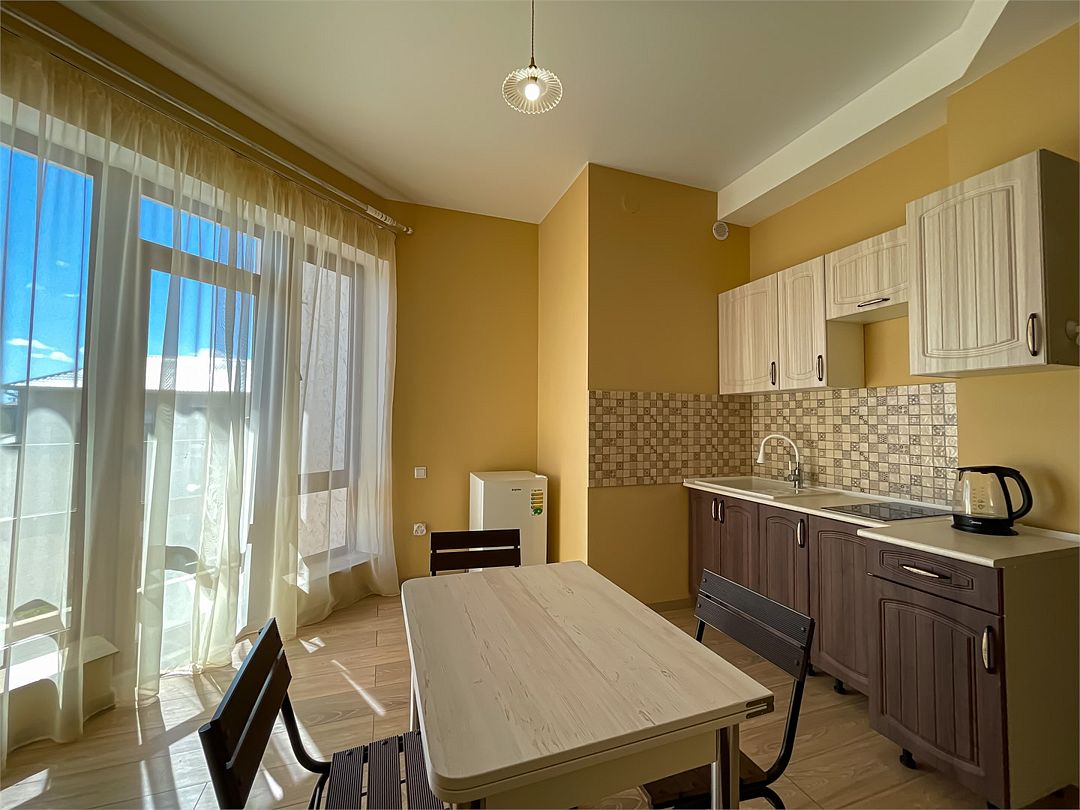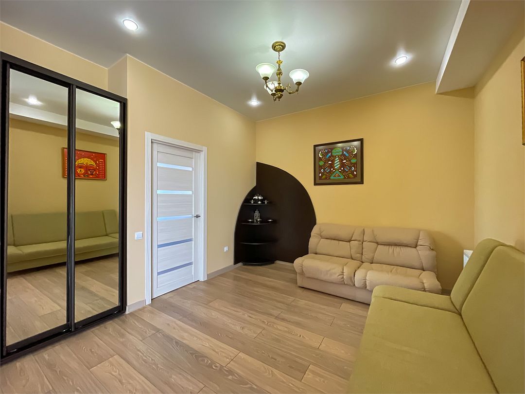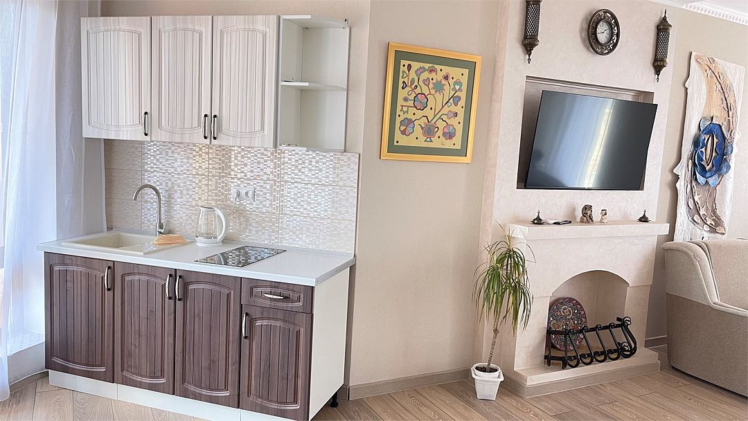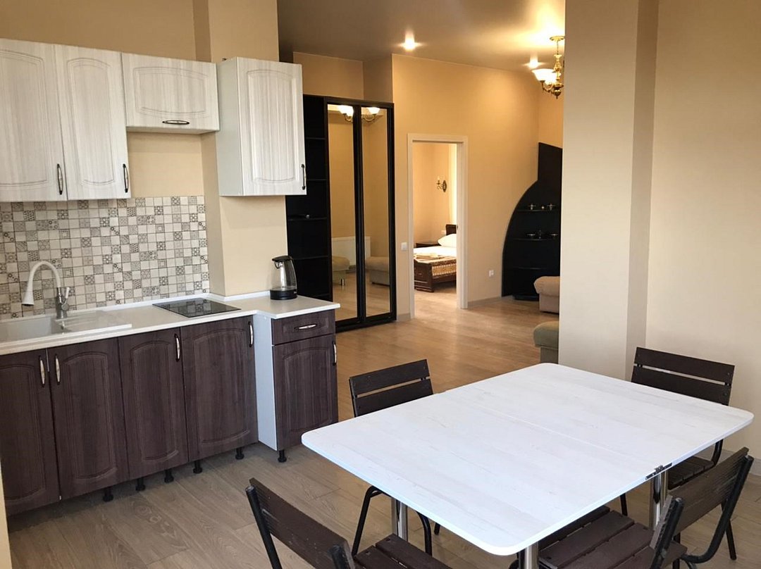 Двухкомнатные апартаменты в современном стиле. Оборудованная кухня , собственная ванная комната с душевой кабиной, туалетом и умывальником к вашим услугам. Мы позаботились о каждой мелочи для Вашего удобства.Услуги и удобства
