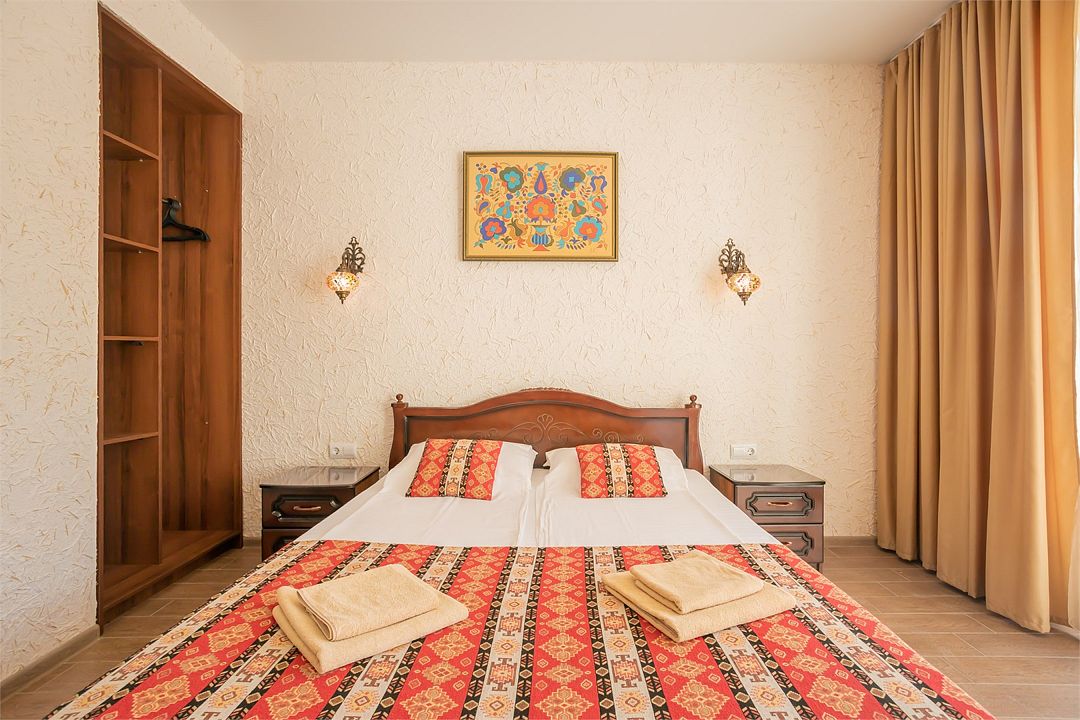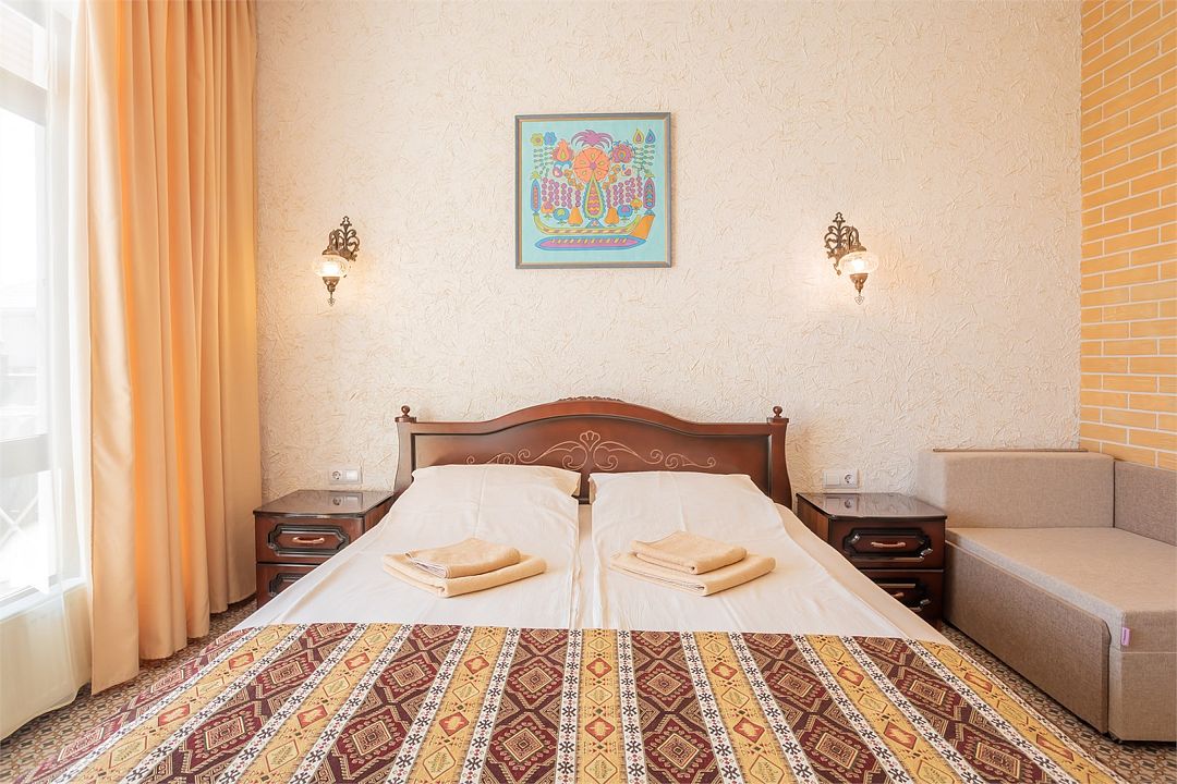Номер Двухместный Стандарт включает в себя ванную комнату, которая оборудована самыми современными удобствами. Дизайн и эргономика не оставит равнодушными самых искусных ценителей чистоты и комфорта. Прекрасное сочетание европейского сервиса и восточных традиций.Услуги и удобства