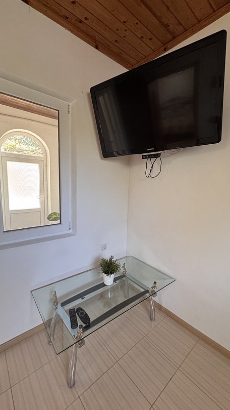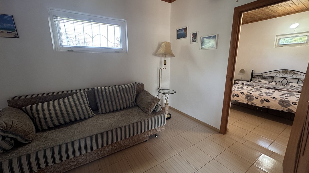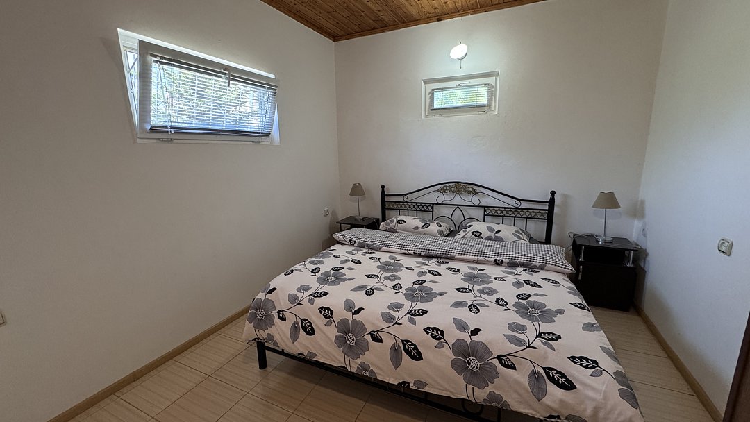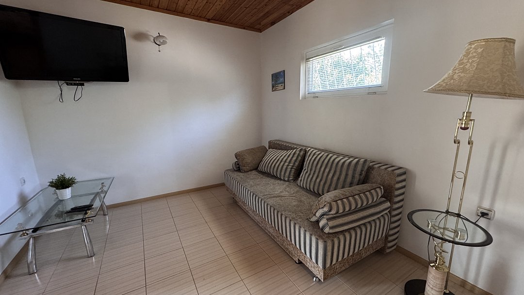 В номере: 2-х спальная деревянная кровать с ортопедическим матрацем, шкаф, плазменный телевизор, холодильник, электрочайник и набор необходимой посуды (тарелки, стаканы, ложки, вилки). На территории есть WI-FI.
