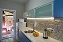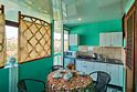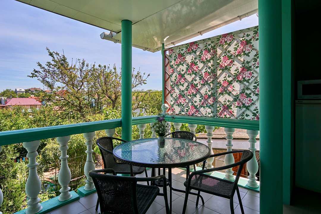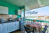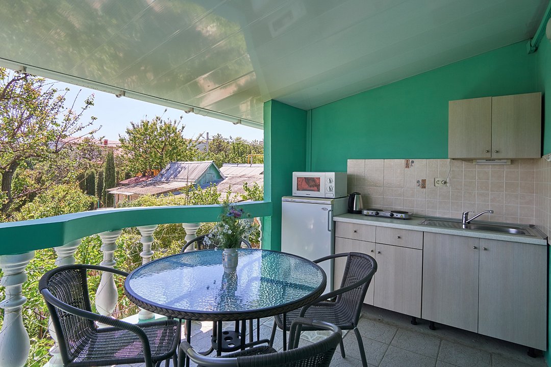 Лоджия оборудована мини-кухней, включающей холодильник, микроволновую печь и двухкомфорочную электрическую плиту. Здесь также есть посуда, обеденный стол со стульями и сушилка для белья. С террасы на третьем этаже открывается панорамный вид на море и окружающие пейзажи.