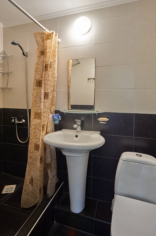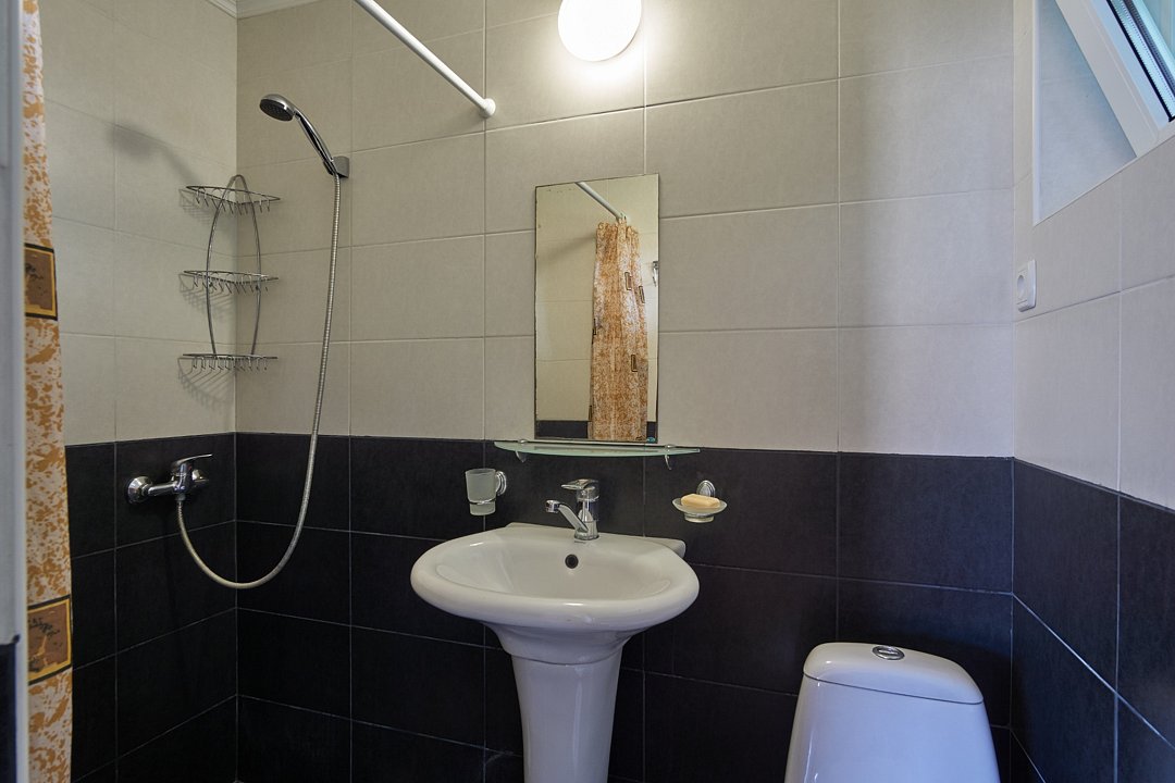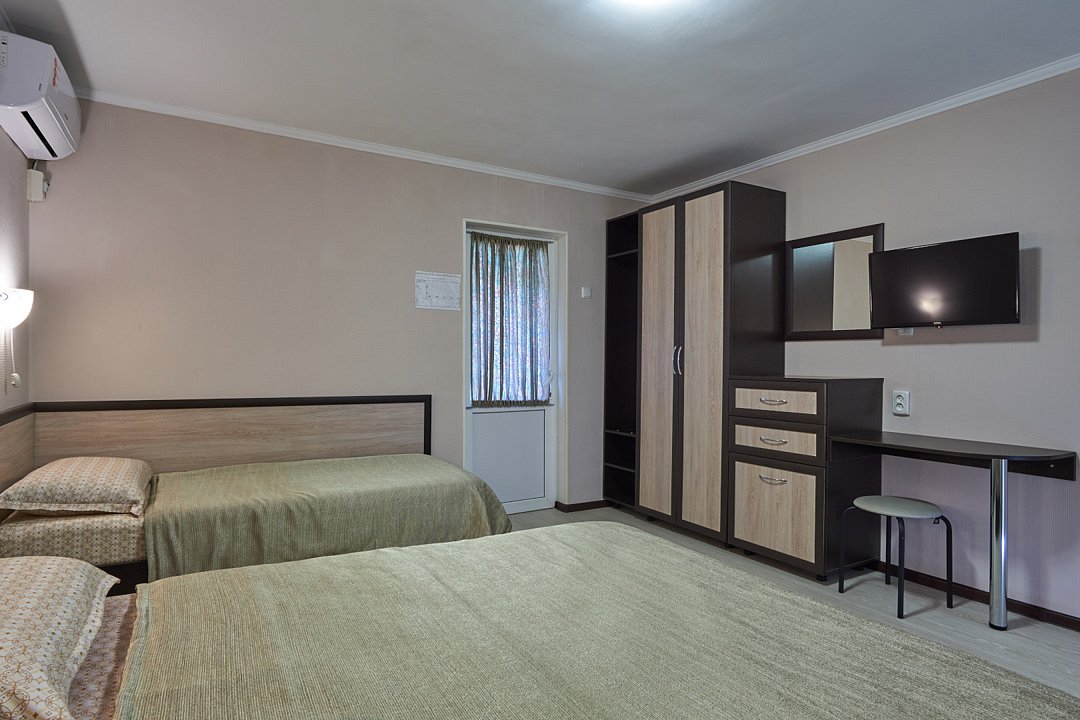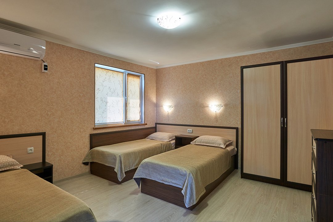 В комнате есть необходимая мебель, телевизор и кондиционер. Санузел оборудован душем. Для сна предусмотрены три односпальные кровати размером 80х190.