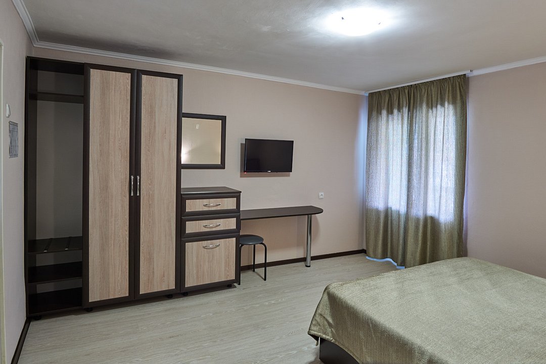В комнате есть необходимая мебель, телевизор, кондиционер и санузел с душем. Спальное место — кровать размером 160х190.