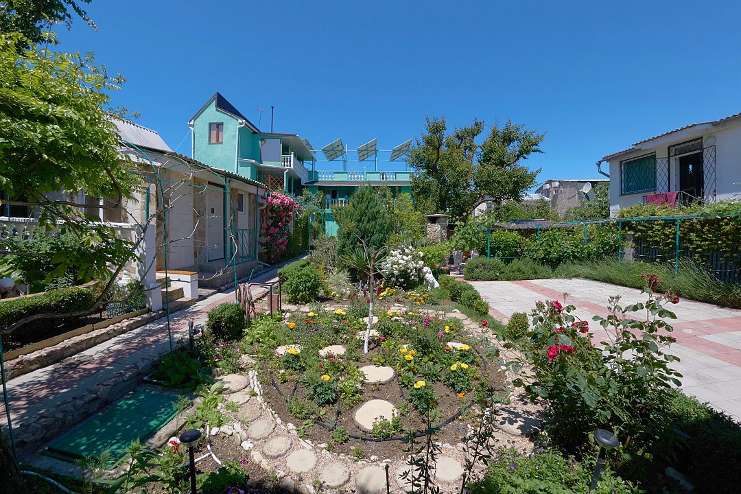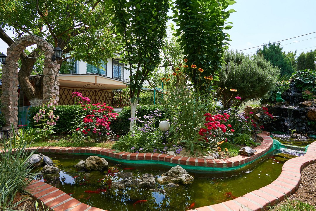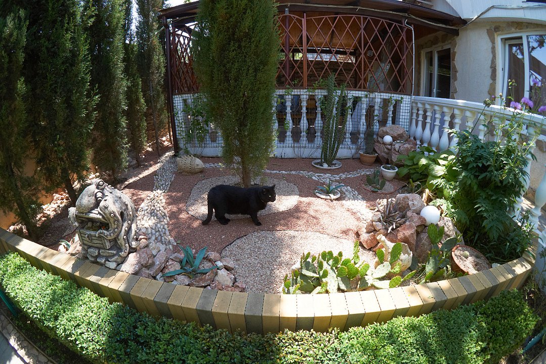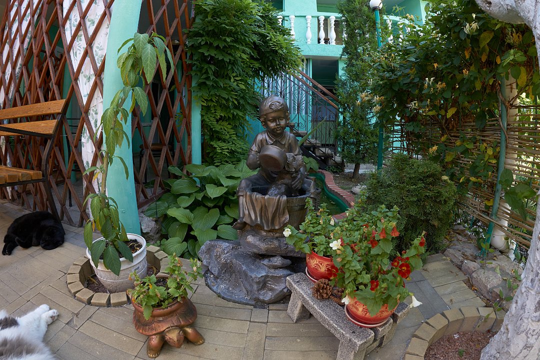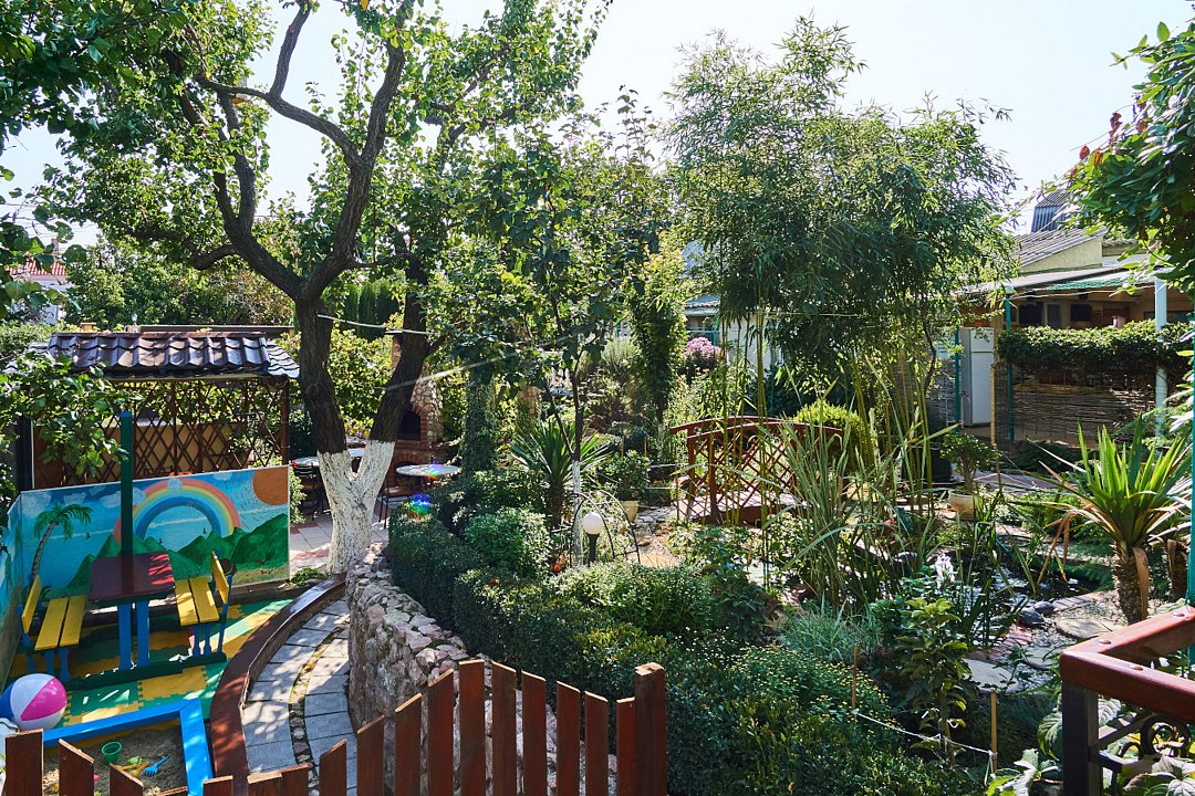 Просторный, красиво оформленный двор, цветущий сад, со стрижеными газонами, детский уголок с песочницей для самых маленьких гостей.