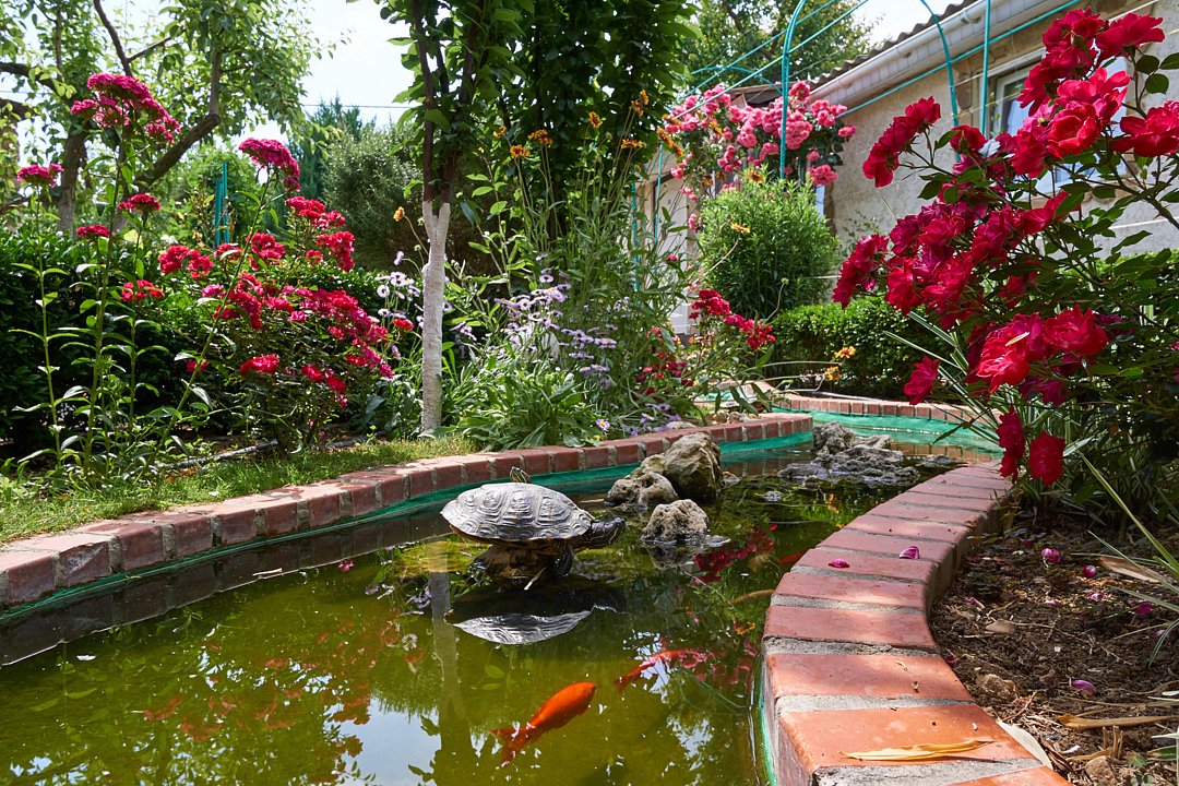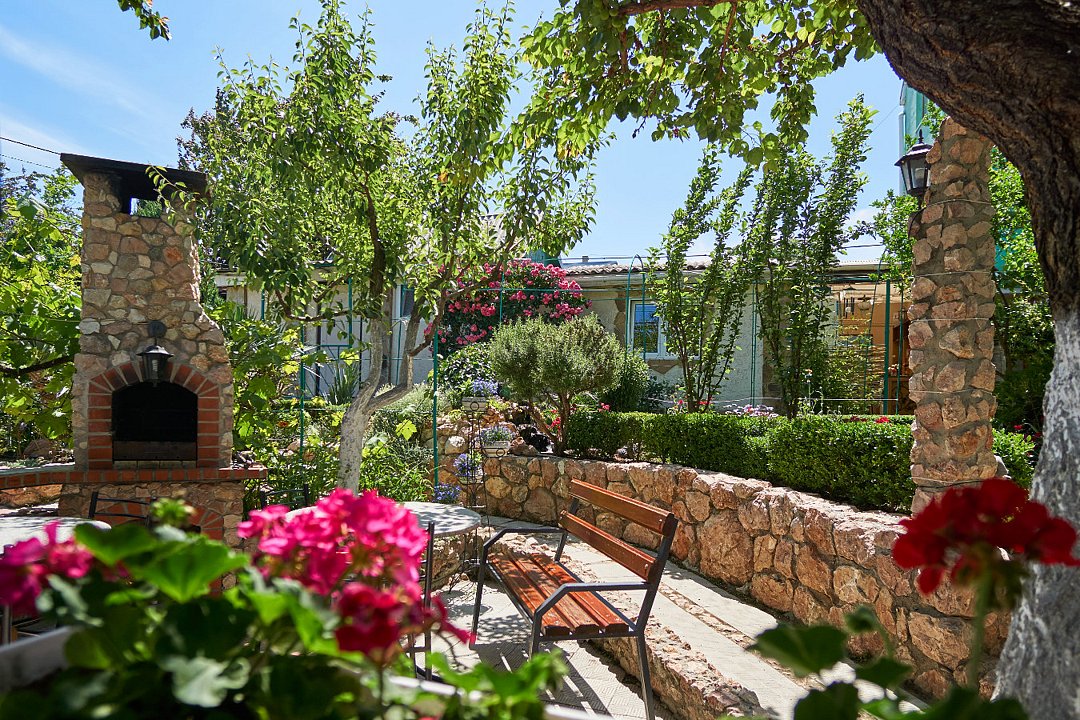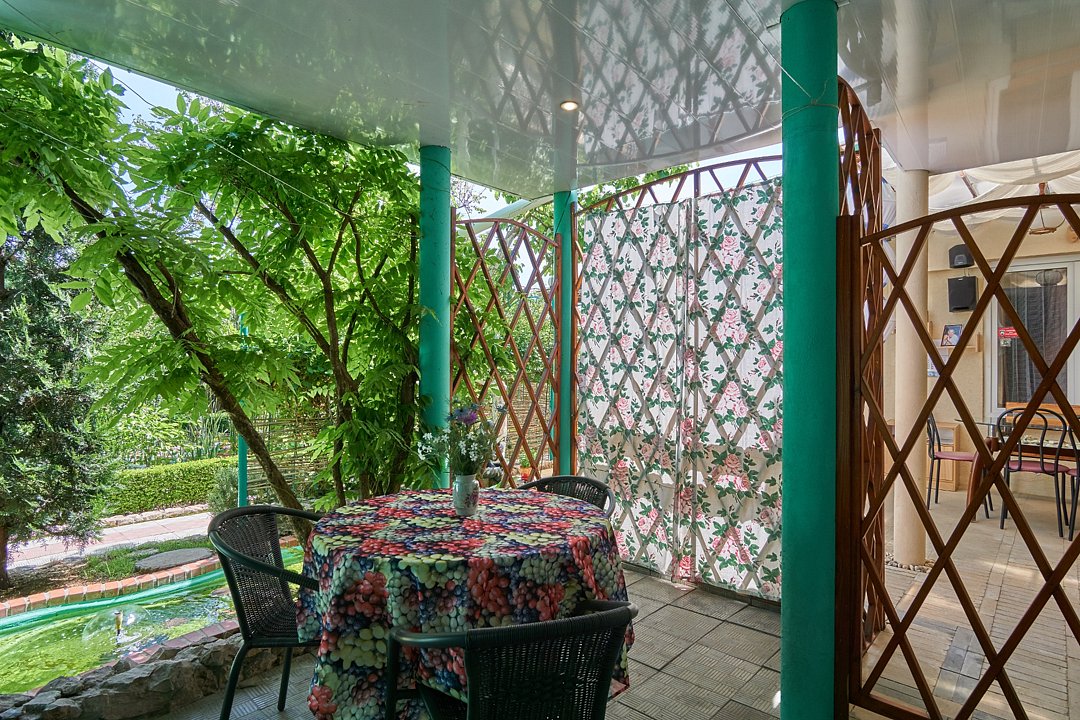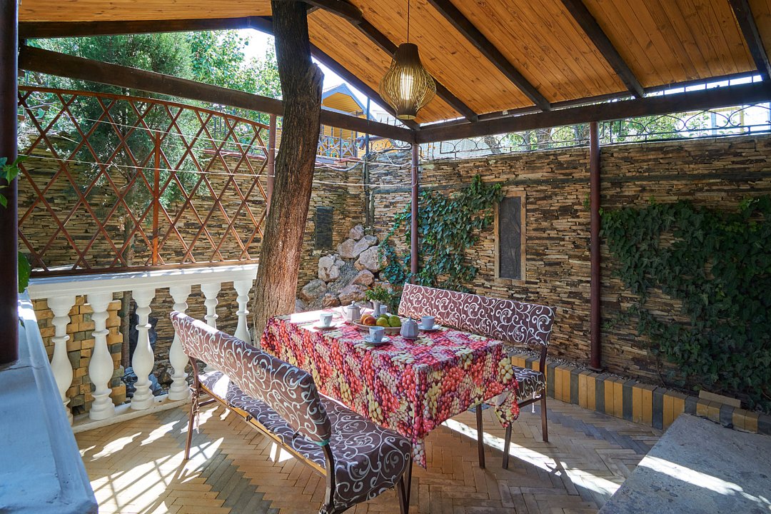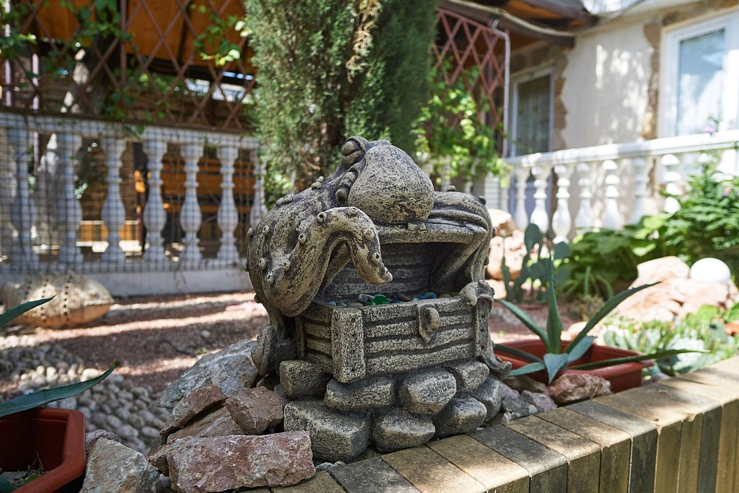 Просторный, красиво оформленный двор, цветущий сад, со стрижеными газонами, детский уголок с песочницей для самых маленьких гостей.