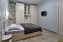 «Дачный домик» — это отдельная часть дома с беседкой, включающая комнату, кухню, прихожую и санузел. В комнате есть вся необходимая мебель, телевизор, кондиционер и спальные места: двуспальная кровать (160х190) и односпальный диван (90х190).