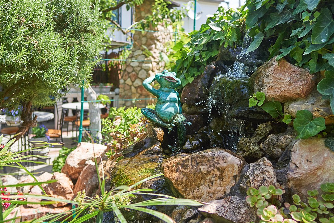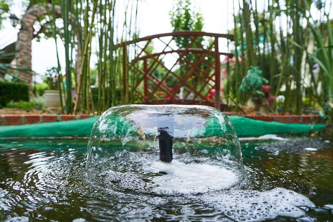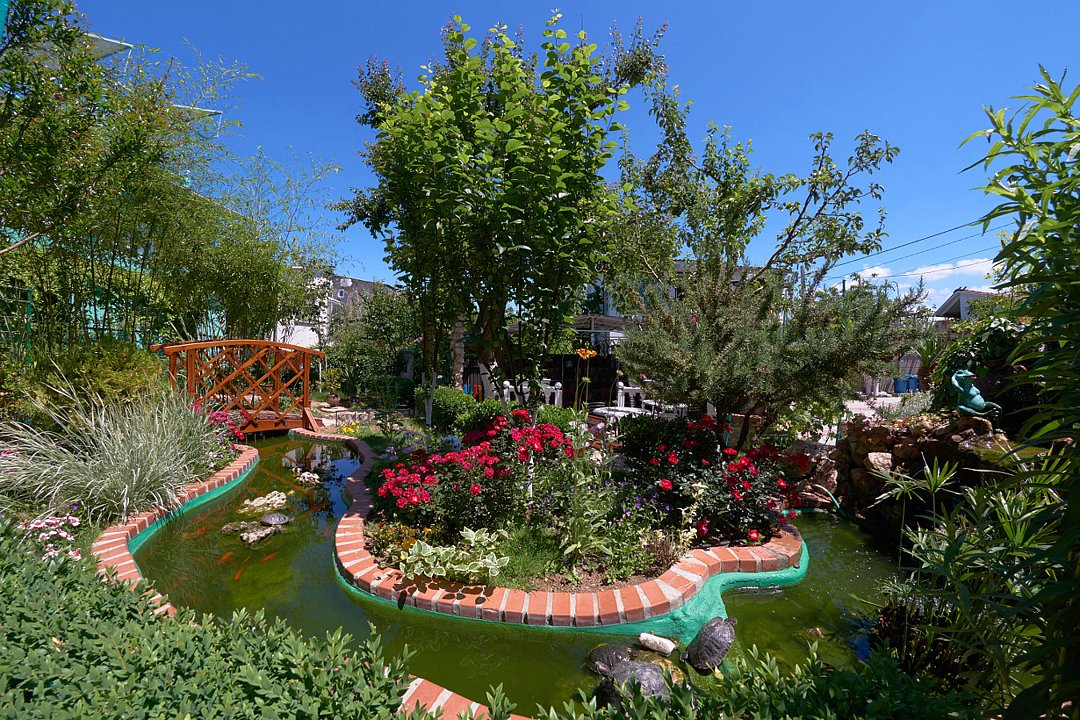 Территория оформлена хорошо, минифонтаны, водоемы с рыбами и черепахами, детям нравится, есть песочница с игрушками, игры для детей тоже имеются.