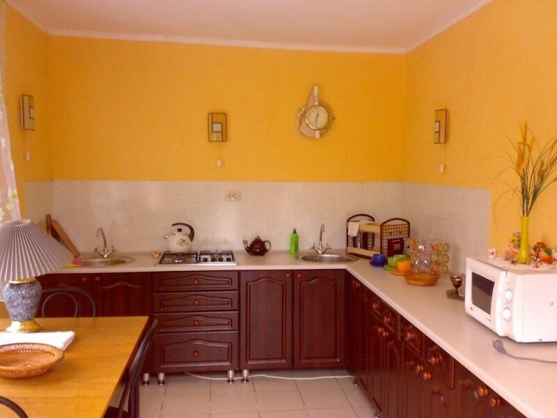 Рядом с комнатой, где располагаются гости, находится общая кухня. Здесь есть абсолютно все для приготовления и разогрева еды, набор посуды.