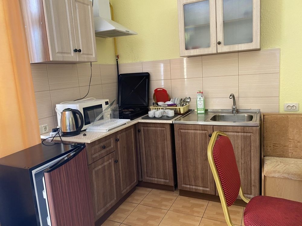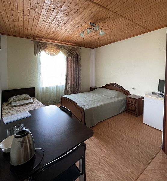 авг. 2020 г.Волшебное место!Мы только вернулись из Межводного и останавливались в Мари-Анне. Это чудесное место! Нас встретили очень душевно. Номера не новые(у нас был шестой номер обычный маленький в корпусе со столовой), но чистые с телевизором на кучу каналов(стандартный пакет), кондиционер, маленький холодильник, душ, горячая вода всегда, и вполне удобная кровать и чистая постель, что для меня очень важно. Была еще кушетка. Столик, комод, стулья - это уже так. Сантехника не новая, но все работало на 5+. полотенца меняли раз в три дня, хоть я и просила не менять, так как мы приехали всего на пять дней. Уборка также, раз в три дня. Постель меняют раз в пять дней.