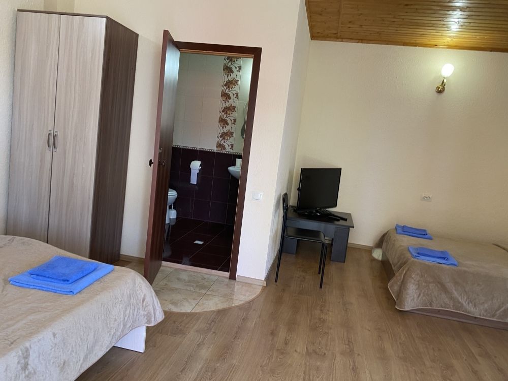 Оборудование: телевизор, спутниковое, цифровое тв, холодильник, кондиционер, фен, электрочайник, средства личной гигиены Удобства: туалет и душ в номере, санузел совмещенный Мебель: 3 односпальных кровати, детская кроватка (по запросу)В гостиничном номере