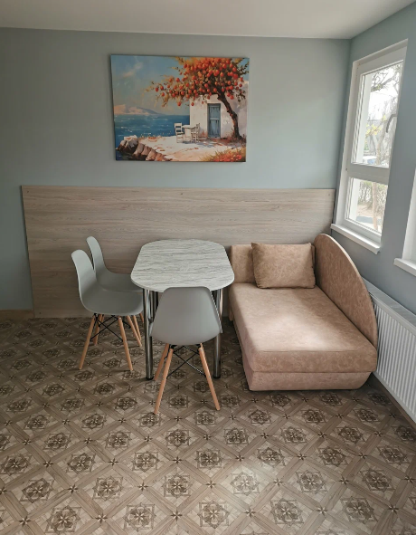 В пансионате 6 номеров однокомнатных двухместных и 1 двухкомнатный на четырех человек. В однокомнатном номере имеется кондиционер, холодильник, телевизор, электрочайник. Предоставляются гладильные принадлежности. В двухкомнатном номере имеется кондиционер, холодильник, телевизор, электрочайник, кухня с возможностью самостоятельного приготовления пищи. В номере имеется балкон с садовой мебелью и шезлонгами.