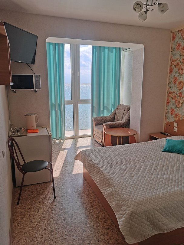 Двухкомнатный четырехместный комфортный номер с видом на море и набережную.
