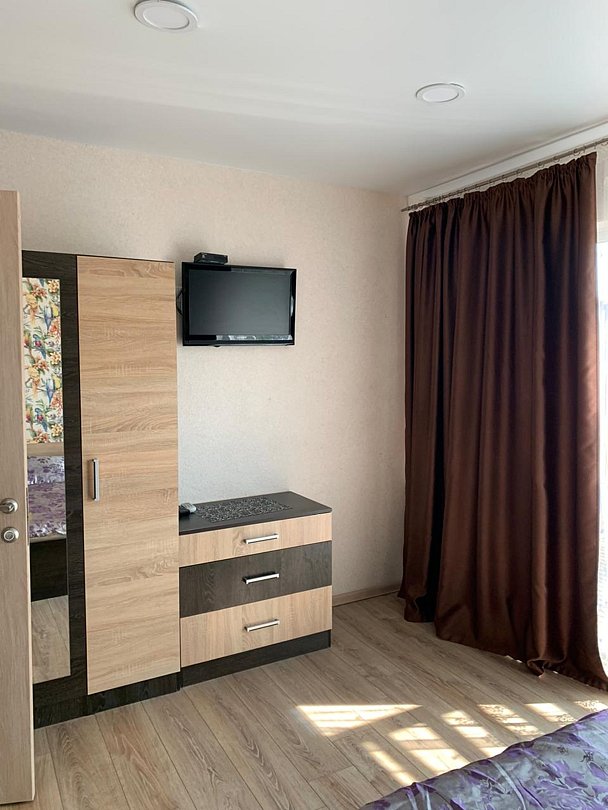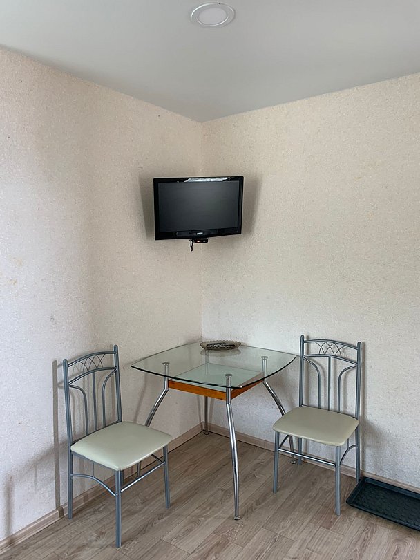 В однокомнатном номере имеется кондиционер, холодильник, телевизор, электрочайник. Предоставляются гладильные принадлежности.