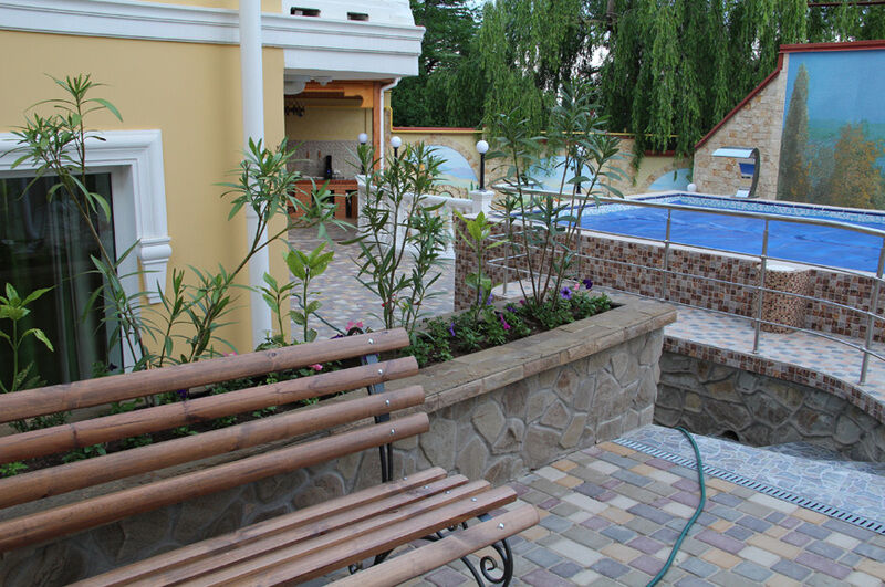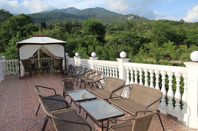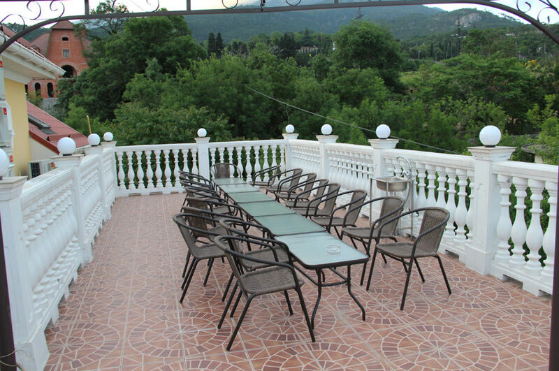 С таким видом, какой открывается с террасы гостевого дома в Массандре, утренний кофе или романтический ужин автоматически становится вкуснее и душевнее. Устраивайтесь поудобнее и наслаждайтесь великолепным видом завода «Массандра» и вызревающих на солнце бочек с вином, безграничной водной гладью и богатой зеленью крымских склонов, вдыхая чистый воздух, наполненный полезными веществами.