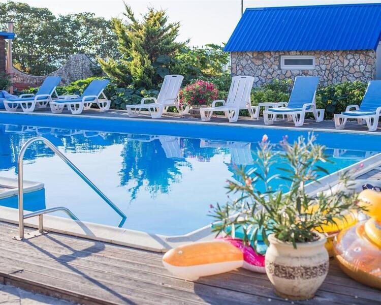 Путешествие с паройНормальный отель!Отель на отшибе, на обрыве моря, на море можно спуститься у Отеля, каменный берег, но искупаться можно. Мы ездили на пляж Баунти в 3 км - шикарный пляж, но было много медуз.. сам отель ухожен, территория облагорожена, отличная детская площадка, зоны отдыха со столиками, бассейн порадовал, есть баня но мы не ходили! Кафе уютное, завтраки на выбор , нормально , вкусно. На втором этаже кафе площадка со столиками с шикарным видом на море. Еда вкусная, готовили долго , но есть можно) официанты приветливые, иногда забывали что ниб в заказе по запаре, но это не критично .. хозяин и хозяйка доброжелательные, сами живут в отеле с детьми, за порядком следят. Жили в номере на 2 этаже, типа чуть улучшенный, за 5500, в целом норм, постель хорошая, номер просторный, большой балкон с видом на море, живности (муравьев, Жуков) в номере было минимум, сами пару раз не закрыли балкон. Развлекухи вечером тут нет, как и везде на этом побережье, поэтому в 23 отбой у нас был, но нам норм. В целом понравилось, но нужно понимать , что отели на этом побережье все такого формата, на отшибе , без сервиса, без инфраструктуры, и лучше, я думаю , мы бы не нашли.
