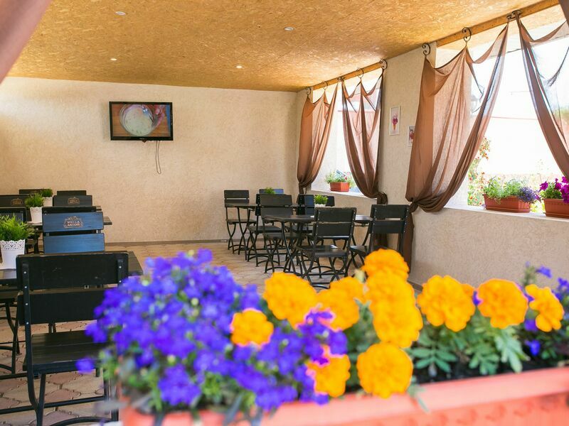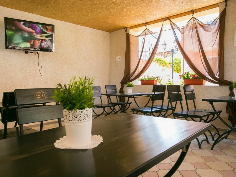 Постояльцы могут заказать трехразовое питание в обеденном зале отеля, кроме того, на территории гостевого дома работает летнее кафе.