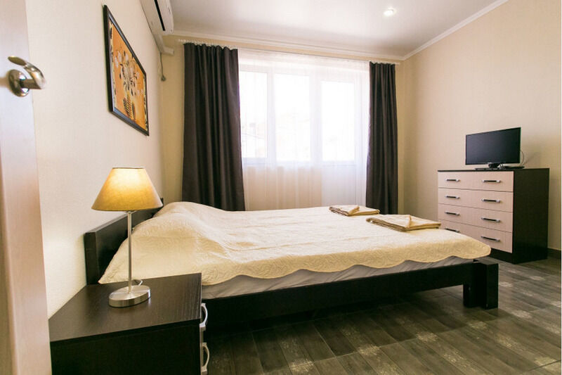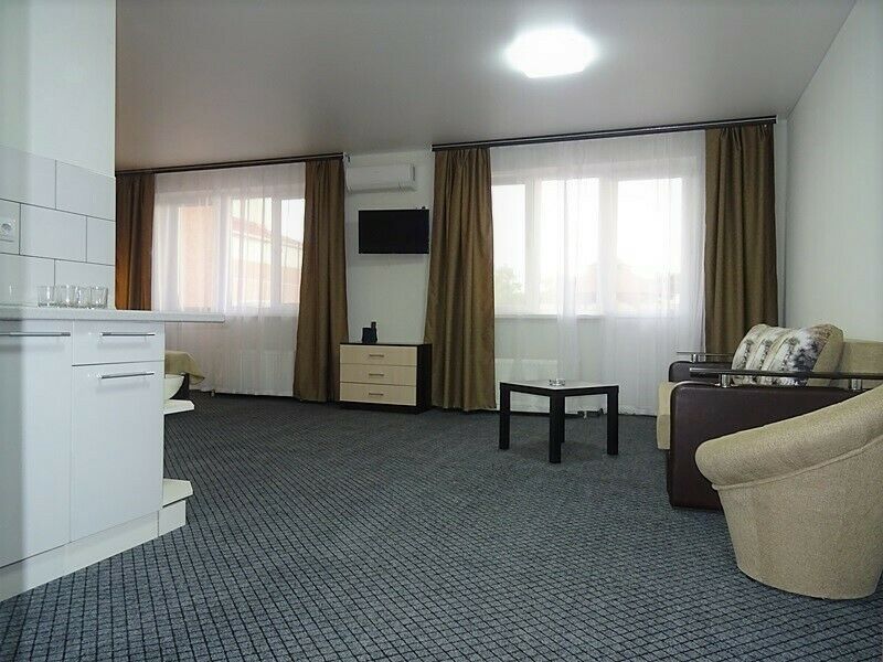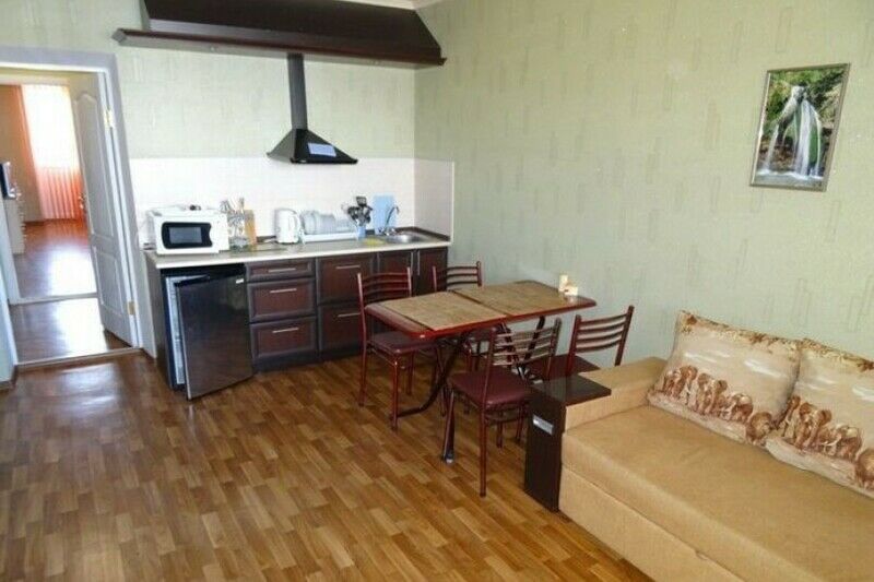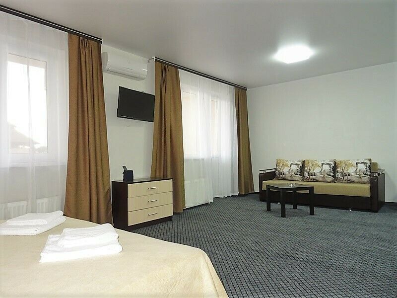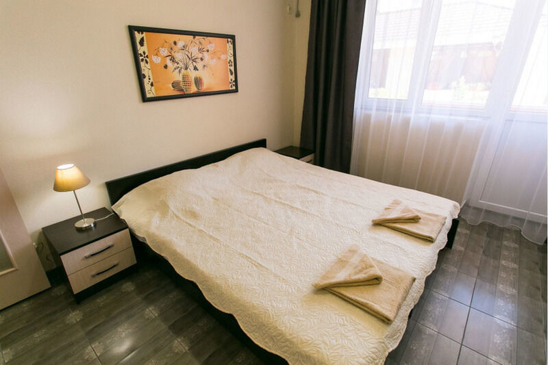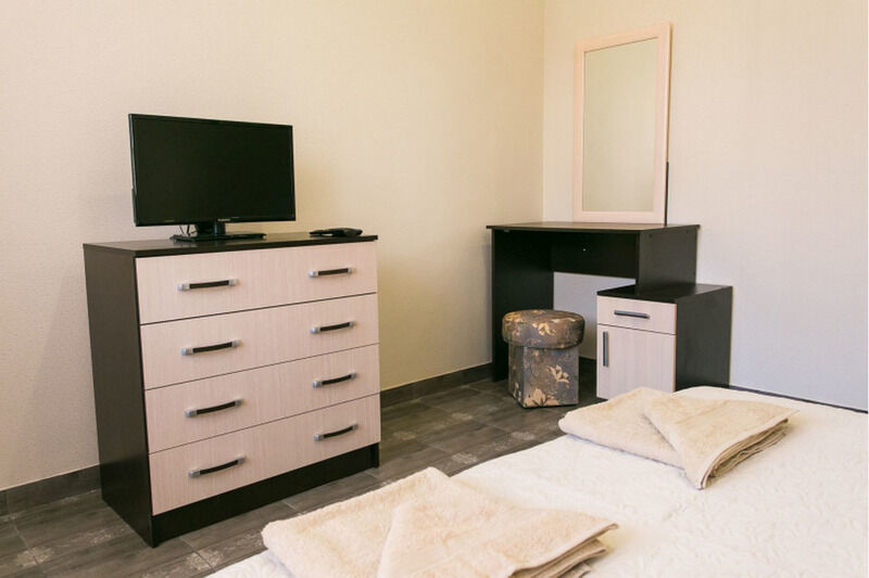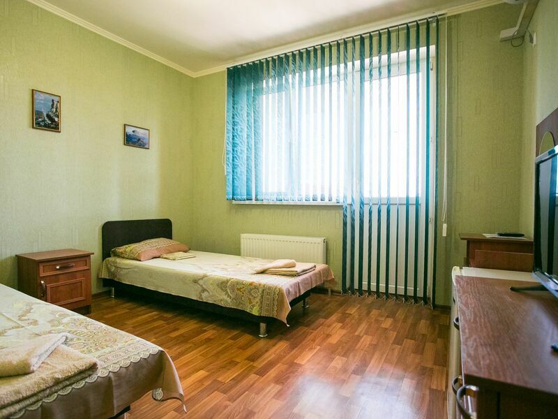 Двухэтажный жилой корпус гостевого дома разместился на небольшой закрытой территории площадью 1500 кв.м. Отдыхающим предлагаются однокомнатные и двухкомнатные номера разных категорий, способные вместить более пятидесяти гостей одновременно. Каждый номер оснащен сплит-системой или кондиционером, собственным санузлом с душем, телевизором, есть балконы.