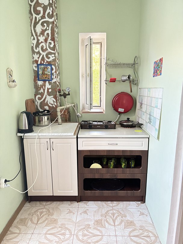 Для приготовления пищи для номеров без кухни , во дворе имеется уютная кухня со всей необходимой техникой и инвентарем. Для тех кто не желает готовить - во дворе работает столовая.