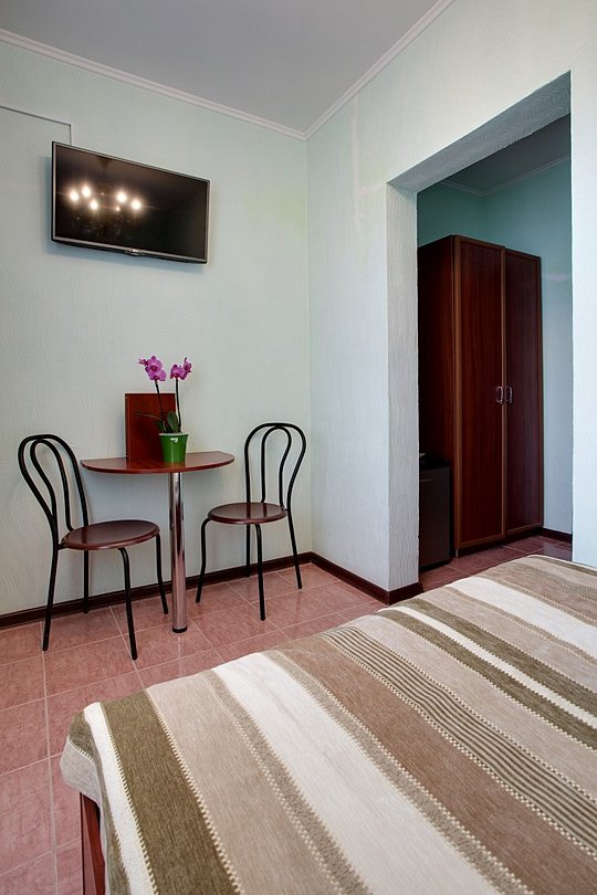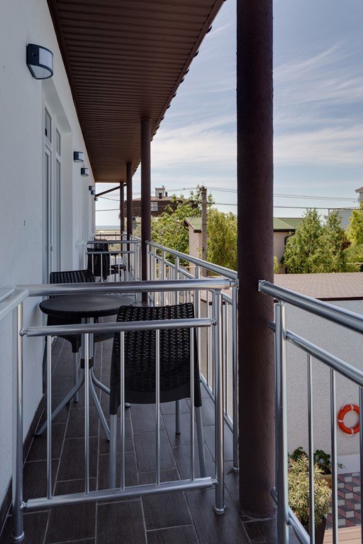 Номера с балконом расположены на первом этаже первого корпуса, с видом на море. В комнате гардероб, кондиционер, телевизор, мини-холодильник. Санузел с душем, фен, комплект полотенец.