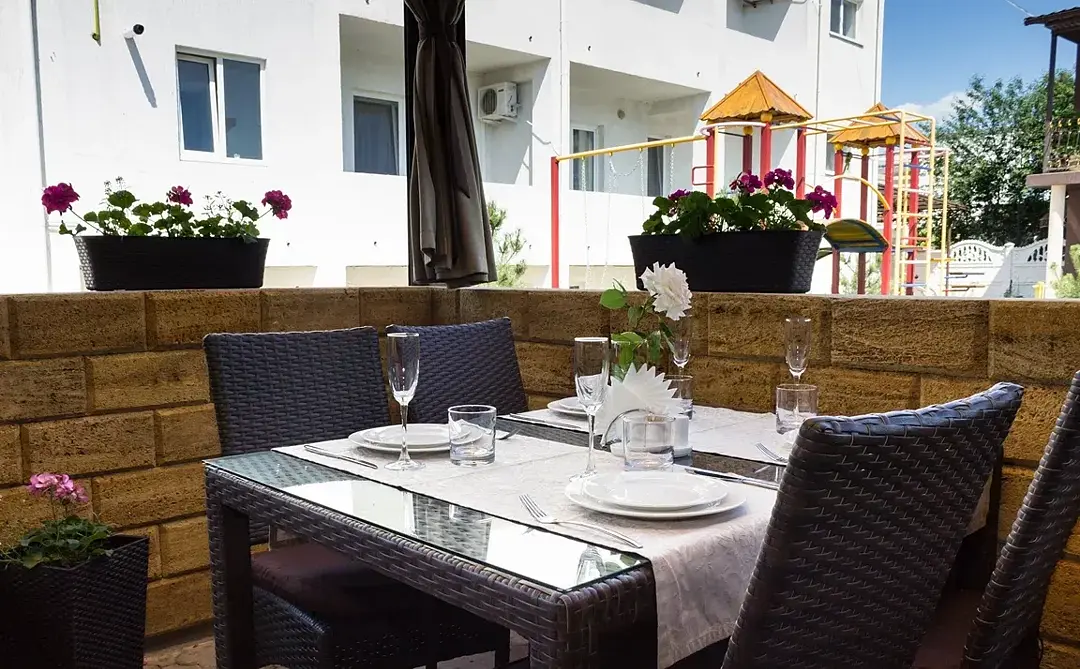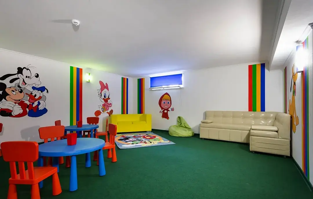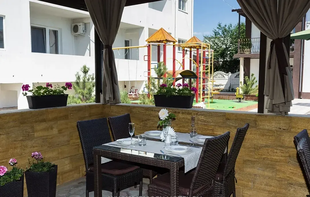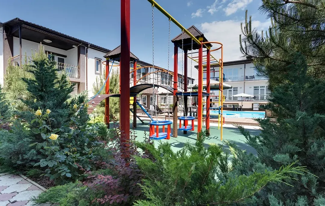 Для маленьких посетителей гостевого дома есть бассейн, игровая комната, детская площадка, аниматор. К услугам их родителей — бесплатный Wi-Fi, удобная парковка, бильярдная комната, прачечная, бар, приветливый ресепшн.