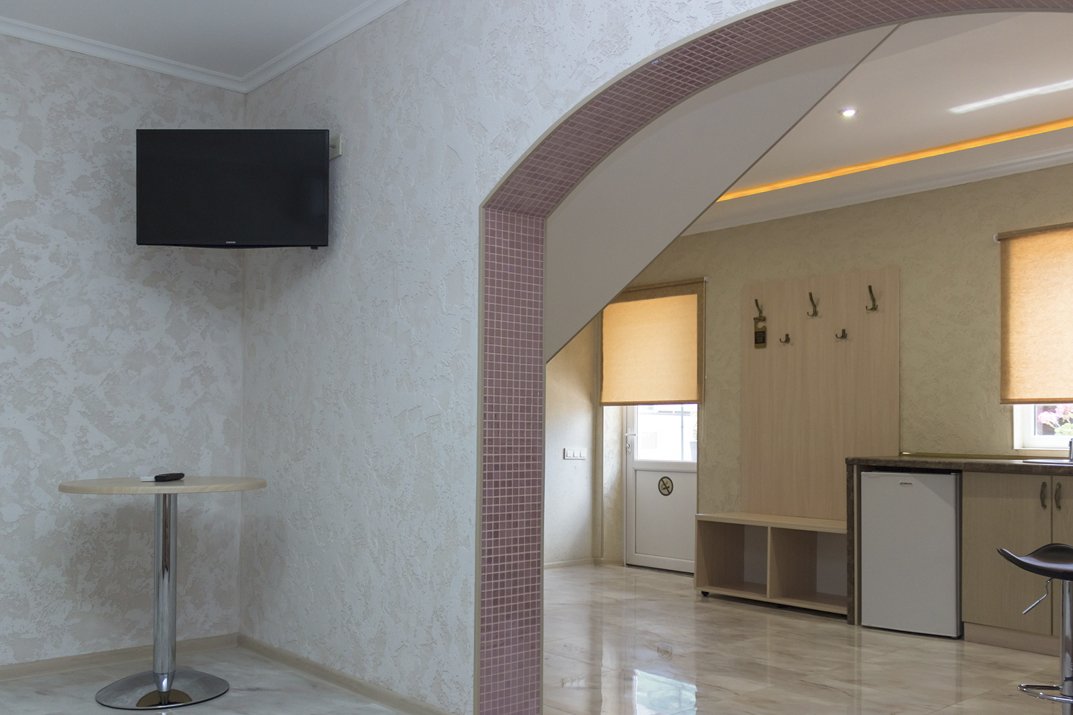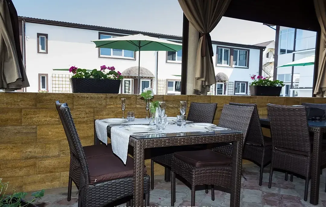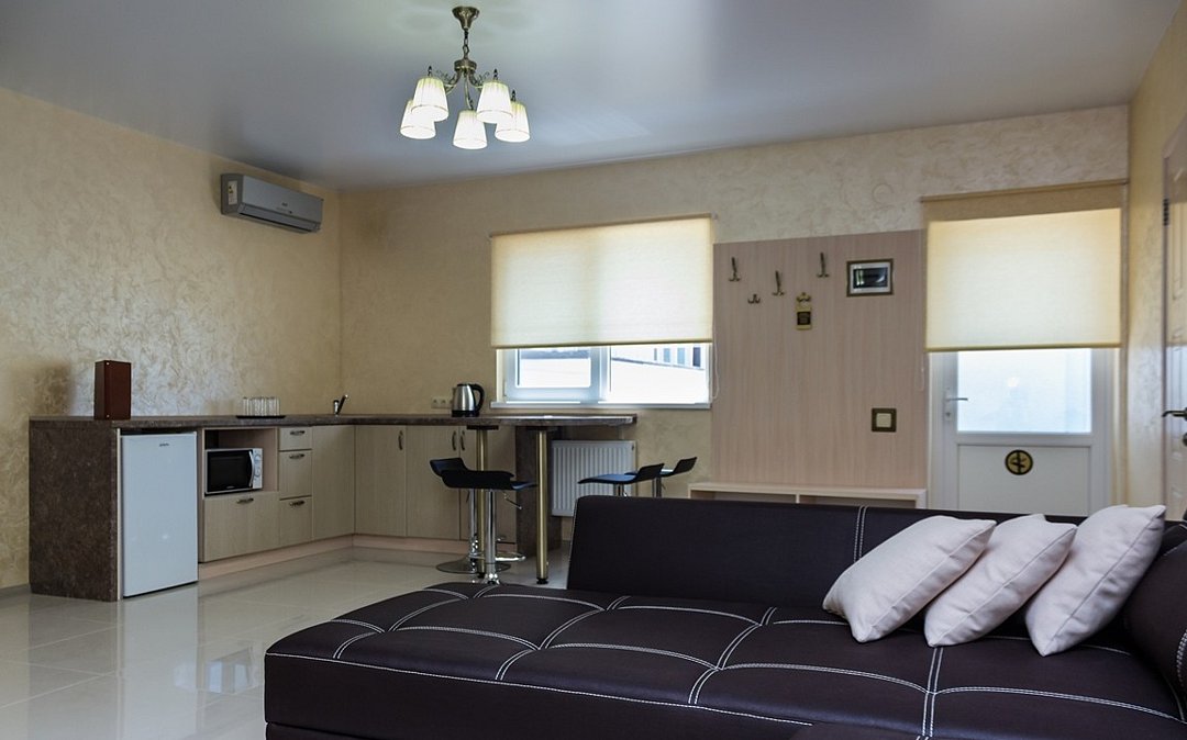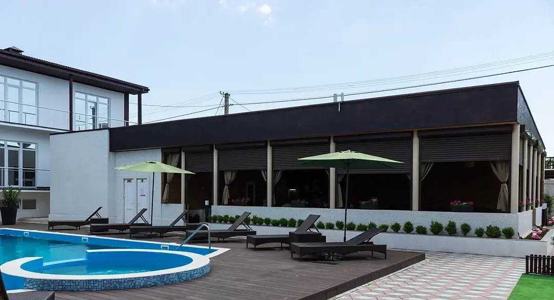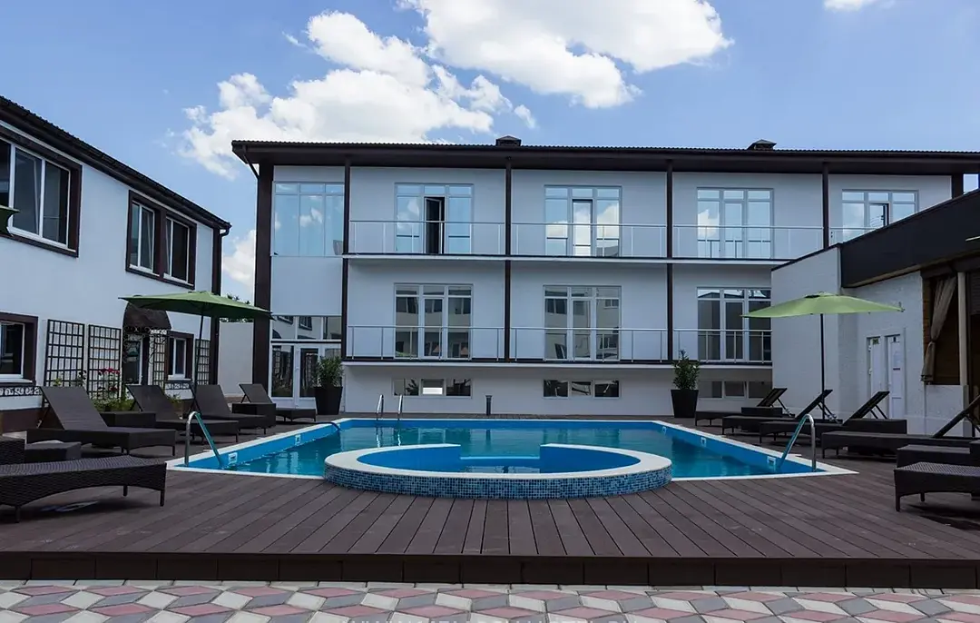 Для маленьких посетителей гостевого дома есть бассейн, игровая комната, детская площадка, аниматор. К услугам их родителей — бесплатный Wi-Fi, удобная парковка, бильярдная комната, прачечная, бар, приветливый ресепшн.