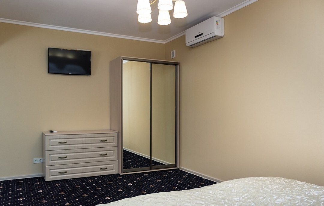 В номере: два гардероба, два кондиционера, два телевизора, два мини-холодильника, два сейфа, два санузла с душем, фен, комплект полотенец.