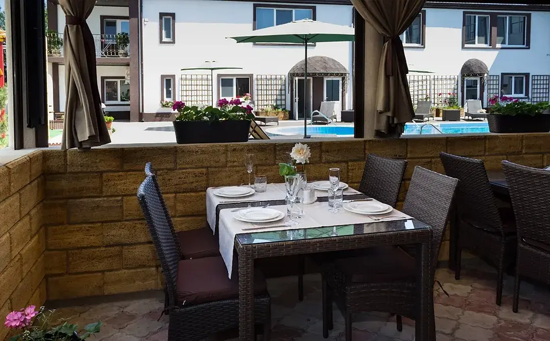 Питание организовано в кафе, где гости могут попробовать традиционную европейскую и домашнюю кухню, а также вегетарианские блюда. В меню представлены комплексные завтраки, обеды, заказные ужины и блюда, приготовленные на мангале.