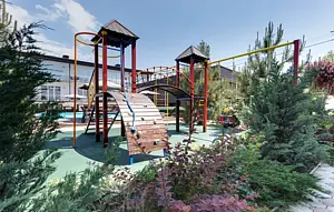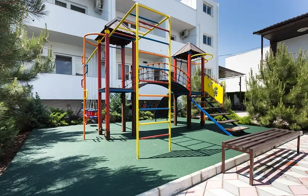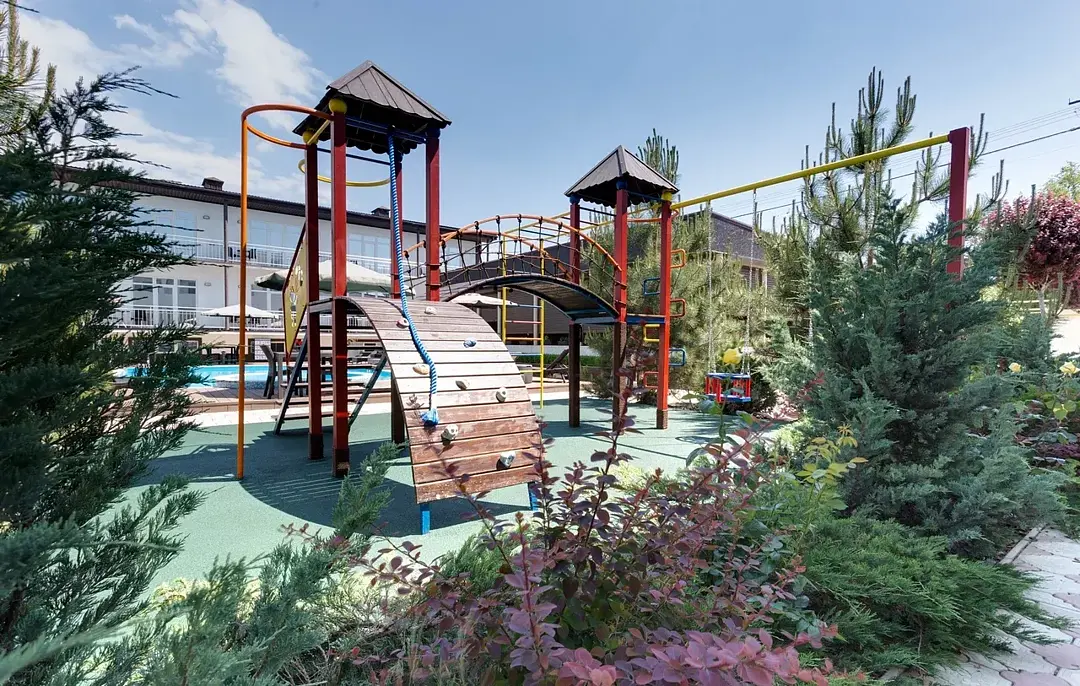 Для развлечения Ваших деток на территории оборудована новая игровая площадка с различными активностями, которые не позволят детям скучать.