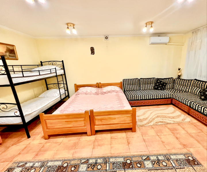 Поездом до ж/д вокзала г. Симферополь, далее на маршрутном такси «Симферополь – Ялта» до остановки «Винзавод», далее на маршрутном такси №103 до остановки «Советская площадь», далее пройти 770 м до гостевого дома.