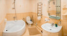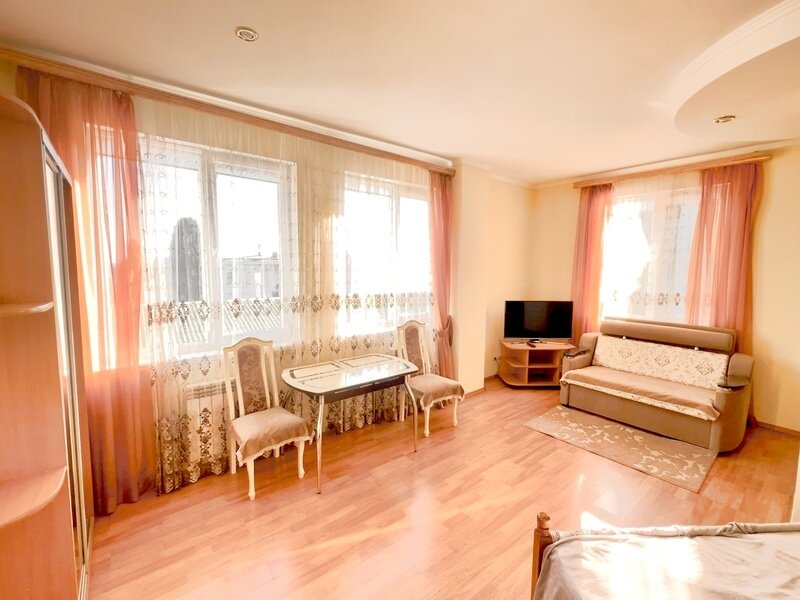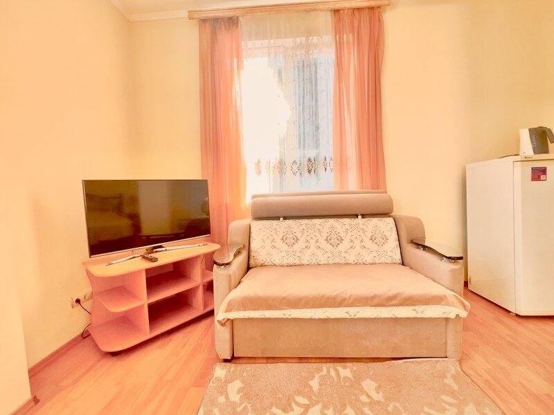 Апартаменты оборудованы отличной кухней со всей необходимой утварью, в других категориях гостям предоставлен чайник, обеденный стол и необходимый набор посуды. В непосредственной близости - кафе и рестораны.
