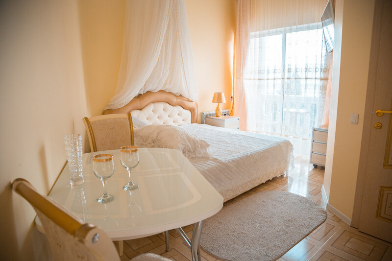 В четырёхэтажном здании с удивительной архитектурой и террасой с панорамным видом на море представлены 8 номеров, которые обставлены комфортабельной мебелью, смарт-телевизорами, сплит-системами, отдельными ванными комнатами.