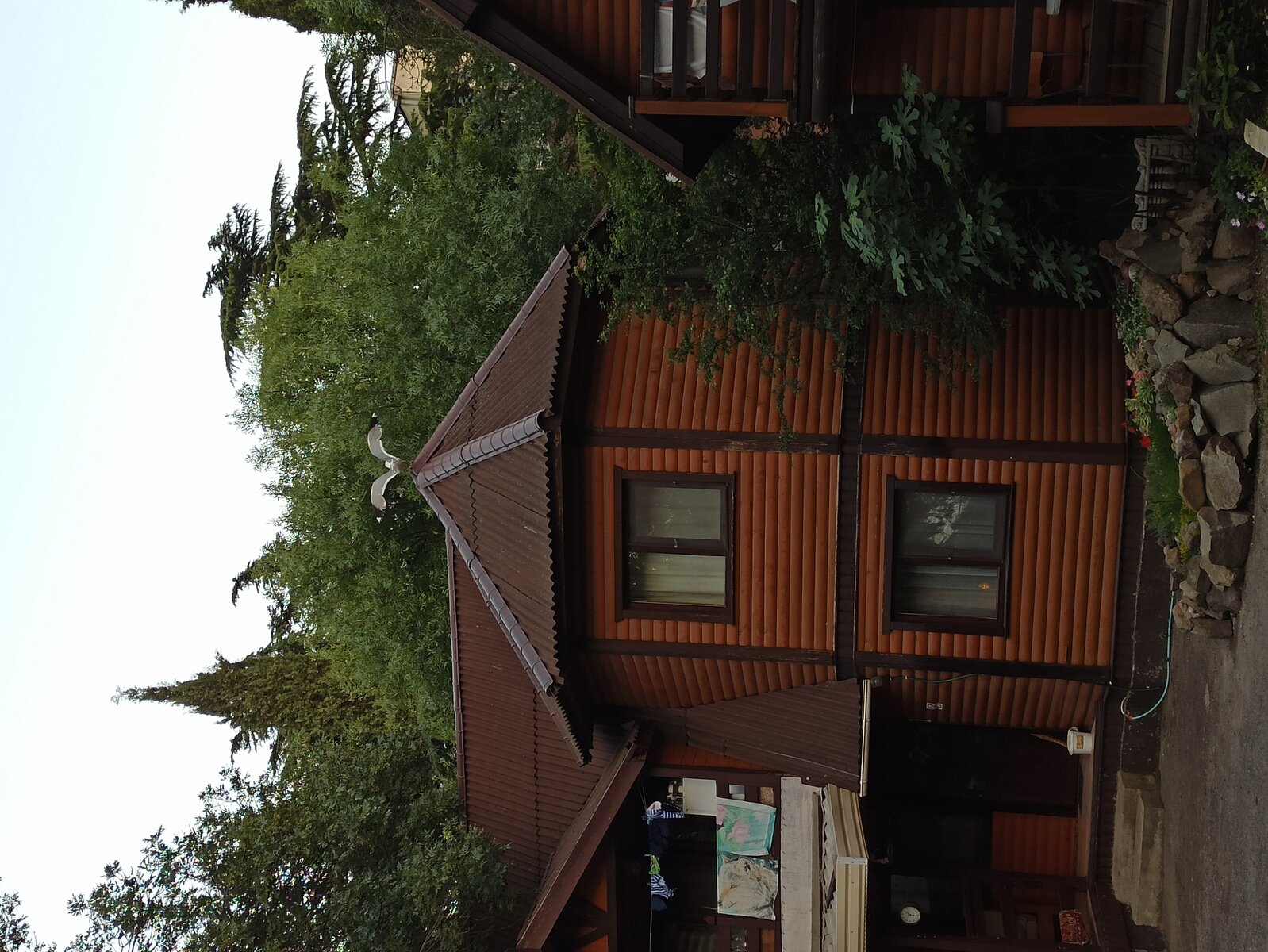 Теперь про базу отдыха. Сделана она частными деревянными домиками, на территории есть много камер, телевизор, круглосуточная комната с утюгом и куллерами с бесплатной горячей и холодной водой. Территория очень красивая: огромные кипарисы, белки бегают, цветы. Много кошек, которые могут зайти в домик и остаться у вас. Камера хранения и библиотека не работали из-за ковида.