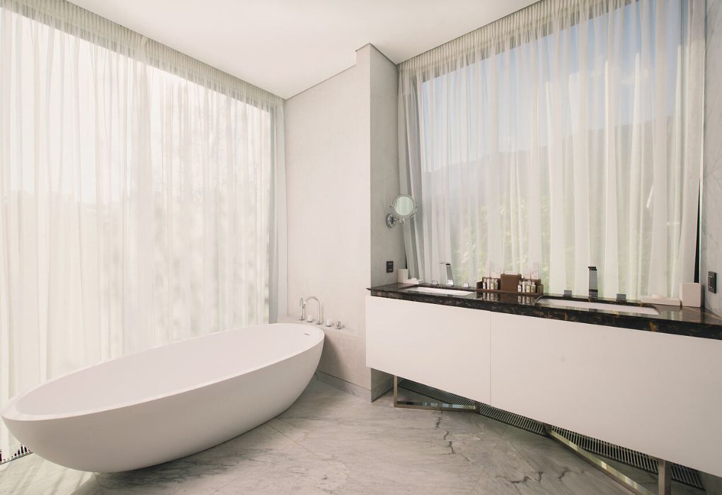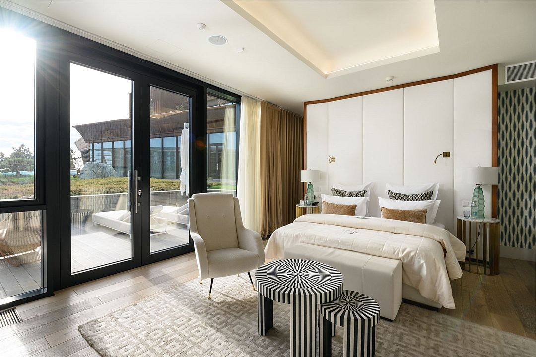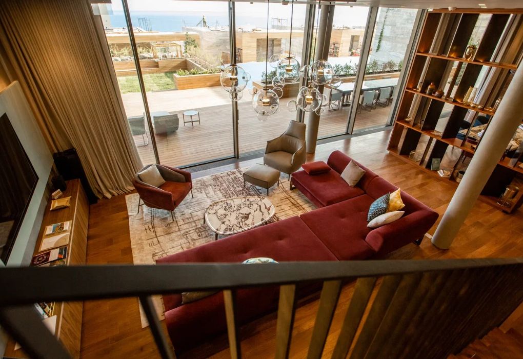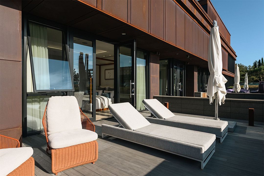 Комплекс возвышается на благоустроенной территории с роскошным парком. Известный английский архитектор Норман Фостер, проектировавший санаторий, придал главному зданию комплекса вид цветка с четырьмя лепестками-корпусами. Возле этого корпуса расположены еще 14 вилл. Оригинальное архитектурное решение гармонирует с местным пейзажем – горами и морем.