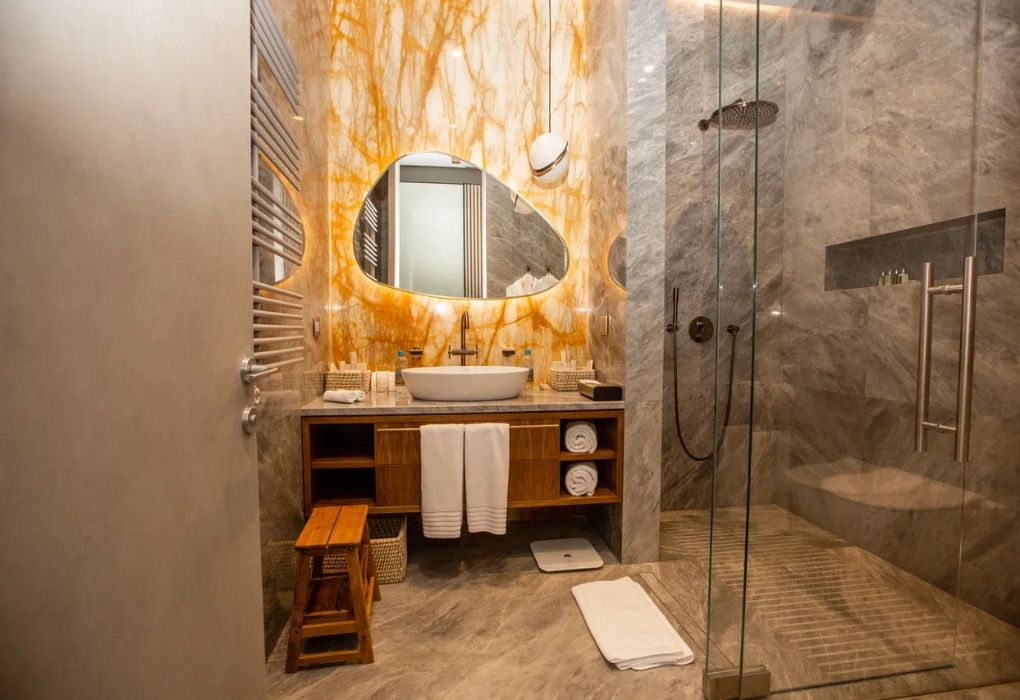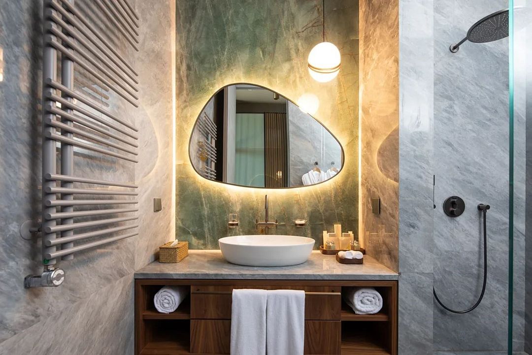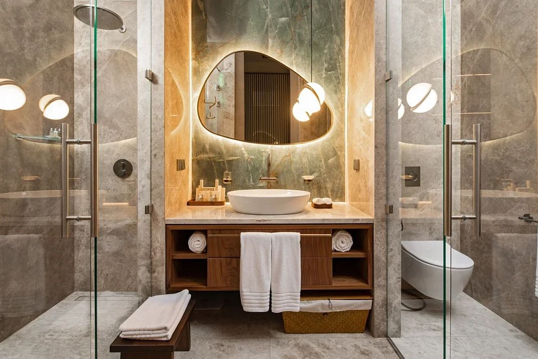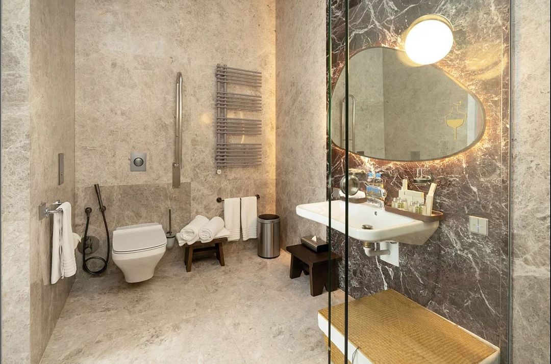 Дизайн стандартного номера выше всех похвал! Сочетание мебели, натуральной кожи и камня 😍 Постоянно хотелось всё щупать, фотографировать, на сколько всё продумано, чтобы было всё красиво, удобно и минималистично 🥰