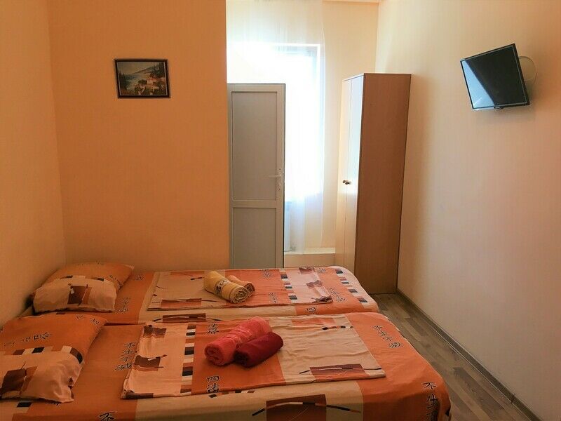 Короткий отпуск с друзьямиМаксимум комфорта по минимальной ценеКогда ехали за эти деньги рассчитывали на меньшее,свежий ремонт во всех номерах,чисто,уборка и смена белья по требрванию,у нас был номер эконом ,две кровати ,телевизор(маленькая плазма),две тумбочки и шкаф,мебель новая,на окнах жалюзи,в номерах эконом нет кондиционера,кому принципиально берите- стандарт,нам он был не нужен.Кухня общая,посуда,чайники,два холодильника,мультиварка,посуда вся в наличии,любых форм и размеров,есть стиральная машина и даже порошок дают,утюг ,гладильная доска,если нужен фен тоже дадут.Общий балкон со столиками с видом на море и гору,ночную Ялту,очень красиво,мы ужинали на балконе.Хозяева отличные и доброжелательные люди,встретили ,занесли чемоданы и проводили,несмотря на то что выезд у нас был в 5 утра.До набережной пешком 15-20 минут ,придется,преодолеть несколько лестниц,как на улице так и в самом доме,но для нас это был больше плюс,чем минус,так как любая физическая нагрузка приветствовалась.В двух шагах находится музей имени Чехова.Вообшем ,все тепло и по-домашнему,Ялта -замечательный город,с замечательными людьми.В гостевой дом на Кирова вернемся еще раз,остались довольны.