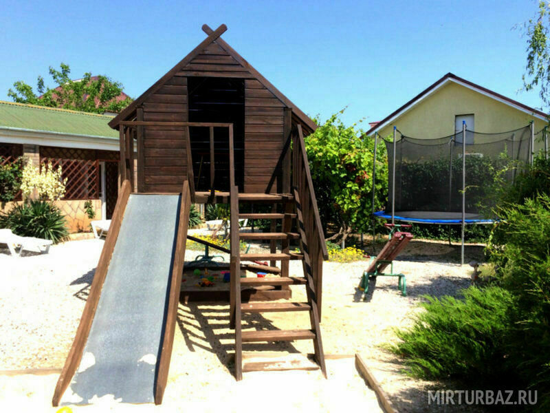 В распоряжении гостей уютная зелёная закрытая территория, где созданы все условия для комфортного отдыха. Имеется детская площадка, батут, зоны отдыха (беседки, мангал, печь барбекю).