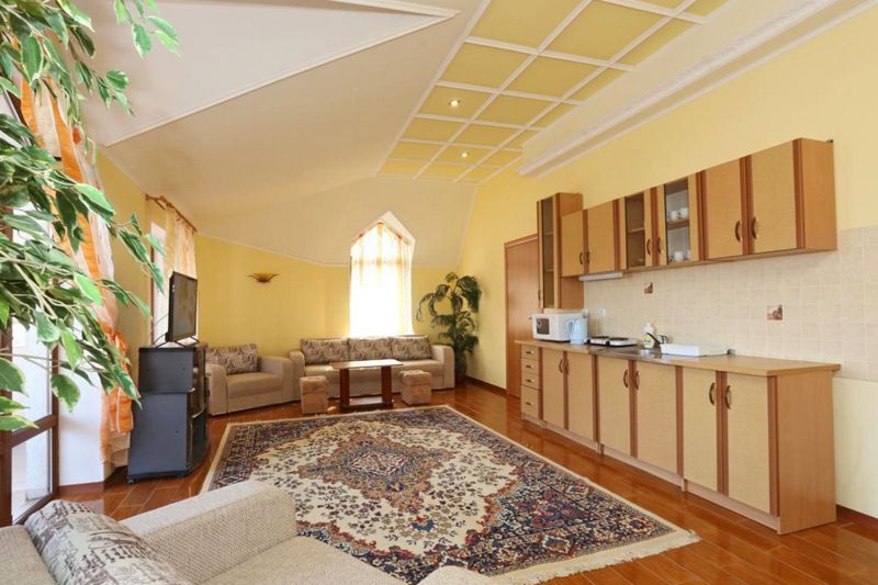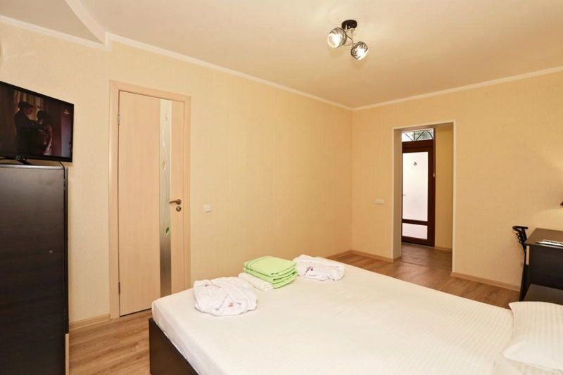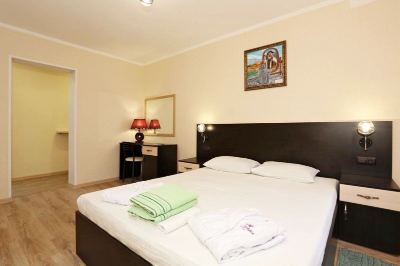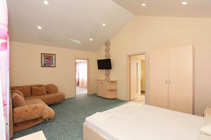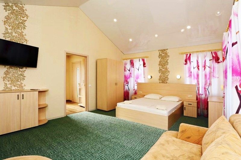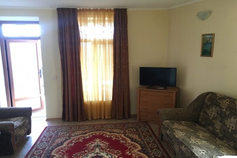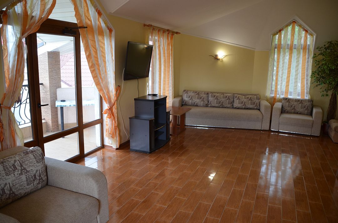 2-х комнатный номер, рассчитанный на 4 человека. Одна из комнат – гостиная с оборудованной мини-кухней, вторая – спальня. В гостиной имеется: раскладной диван с двумя креслами, телевизор, кондиционер, сейф, беспроводной доступ к интернету, обеденный стол. Мини-кухня оборудована: индукционной плитой, микроволновой печью, холодильником, электрочайником, раковиной, необходимым набором посуды. В спальне есть: двуспальная кровать с прикроватными тумбочками, шкаф для вещей, москитная сетка. Санузел состоит из душа, унитаза и раковины, есть фен и полотенца. Предоставляется сушка для вещей. В холодное время года работает отопление и подогрев пола.