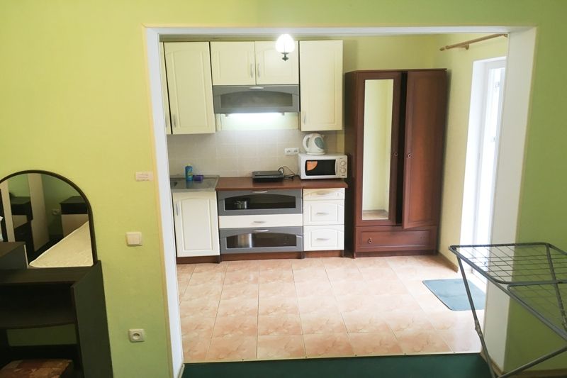 Номер однокомнатный, двуспальная кровать, раздвижное кресло, микроволновка, зона для приготовления кофе, чая, балкон.