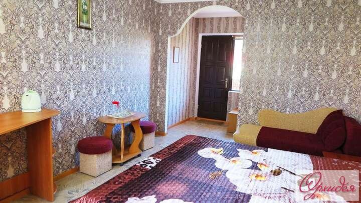 Отдохнуть на море и заплатить при этом, не очень большую сумму, мы предлагаем Вам разместиться в двухместном номере нашего пансионата, полулюкс стандарт. Стоимость номера не большая но, в нем можно разместится небольшой семье из двух взрослых гостей и ребенка. Номер оборудованный всем необходимым для комфортного отдыха и привычной жизни, и состоит из: Комнаты 16м2, меблированной мягкой мебелью: двуспальной кроватью и тахтой, пуфами, шкафом, журнальным столиком, спутниковым ТВ(плазма 32), кондиционером, сейф. Кухонной зоны с холодильником, электрочайником и набором чайной посуды. Санузла с горячей водой, умывальником, туалетом и душем. Балкона балкон проходной на два номера. Номера данной категории расположены на втором этаже и рассчитаны на размещение 2 взрослых гостей и 1 ребенка(до 10 лет). Все комнаты со вкусом оформлены, отличаются качественным современным ремонтом и индивидуальной уютной атмосферой. Благодаря современной мебели и техники в номере - есть возможность хорошо отдохнуть после моря или экскурсионных, туристических маршрутов. Кондиционированный воздух, доступ к WiFi интернету и просмотр любимых спутниковых телеканалов позволят получить от летнего отдыха максимально хорошее удовольствие. Смена белья: каждые 5-6 дней Вода: горячая круглосуточно гелио и бойлер. В стоимость входит: проживание, посещение пляжа, WiFi Питание: от комплексного до шведского стола, в расположенных неподалеку столовых, оплачивается отдельно. Возможен заказ комплексного 3-разового питания, или завтрака, обеда или ужина в отдельности. Питание мы организуем по вашему прибытию, вы сами выберите какое Вам подойдет, по цене, качеству и т.д. Рядом десяток кафе-баров, которые готовят по меню "Домашняя кухня", продуктовые магазины, рынок и т.д. Инфраструктура: собственный пляж пансионата (мелко галечный, песок, есть комфортные навесы для защиты от солнца, летний душ); неподалеку – магазины, кафе, фруктовый рынок, бары, танцплощадка; возможность воспользоваться медицинскими услугами, массаж; WiFi доступ в интернет, междугородний телефон; туристические услуги – возможность бронирования билетов, экскурсии, морские и пешеходные прогулки и т.д. Пляж: собственный, мелко галечный, чистый, неподалеку (150м) от пансионата, самый примечательный и известный на побережье ВНИМАНИЕ! Пансионат "Орхидея" размещает гостей, на отдых, вместе со своими домашними питомцами, в данной категории номера. Правила и обязанности, читаем: Правила проживания с домашними питомцами в пансионате «ОРХИДЕЯ» Правила: Расчетное время: 10-00 (освободить номер необходимо до 10-00) Въезд: 12-00 (при наличии свободных апартаментов – можно ранее) Дети: принимаются постояльцы любого возраста В наличии, для брони, всего 2 номера, номера 11 и 12, расположены рядом, на втором этаже, первый коттедж.Спальные места