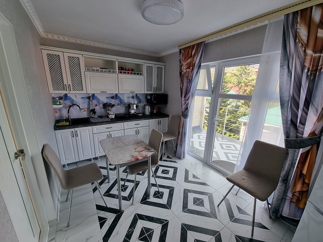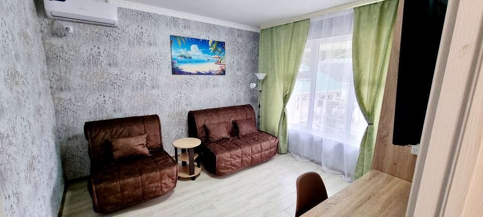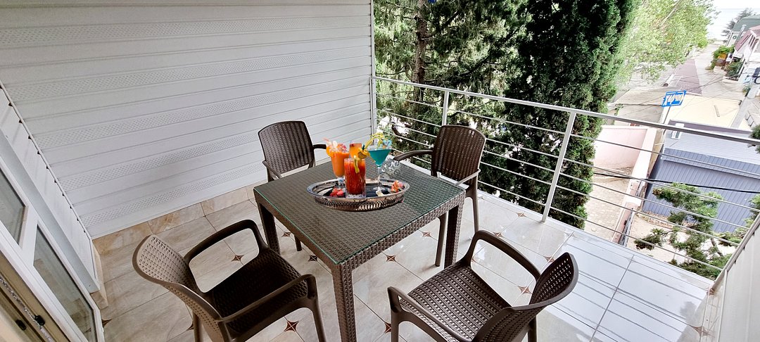 Если вы планируете отдых у моря в хорошем, новом, видовом номере, дружной семьей, то мы вам предлагаем НОВИНКУ сезона 2025 года, в пансионате Орхидея - Двухкомнатные номер с кухней и большой видовой террасой. Площадь номера 60 м.кв. Номер расположен на третьем этаже(подъем на этаж по удобной, винтовой лестнице) и оборудованный максимумом необходимой мебели и современной техникой, он поразит своим комфортом и практически домашним уютом. Состоит он из: Двух комфортабельных комнат (каждая 12м2, изолированы одна от другой, каждая меблирована шкафами, комфортными кроватями, и диванами, современной мягкой мебелью, пуфами, кресло-кроватями, а также телевизорами со спутниковым TV(в каждой комнате плазма 43 дюйма), в каждой комнате кондиционер, имеется доступ к WiFi интернету). Из спальни выходит балкон, с видом на море(на балконе комплект из столика и стульев). Из гостевой комнаты открывается вид на уютный двор, горы и Канаку. Кухня - большая отдельная комната и оборудована: 2-х камерным холодильником, микроволновой печью, электроплитой, обеденным столом и стульями, мойкой, полным набором необходимой посуды, кастрюль, сковородок и столовых принадлежностей). Европейского санузла (с душем, умывальником, горячей водой и туалетом, стиральной машинкой). Лоджия с видом на море, является продолжением кухни, что позволяет проводить время за обедом, ужином или утренним чаепитием, наслаждаясь морским видом. Оборудована садовой мебелью, столом. Такие апартаменты позволяют с комфортом разместить 3-4-х взрослых гостей и 1-2 ребенка детей(до 10 лет), предоставив максимальное количество удобств для полноценного отдыха у моря. Стильный интерьер, качественное, новое наполнение и наличие необходимой мебели и техники даст вам возможность расслабиться после жаркого дня и зарядиться энергией перед вечерней прогулкой или долгой экскурсией. Смена белья: каждые 5-6 дней В стоимость уже включено: проживание, посещение пляжа, WiFi Питание: Выбор за вами, от комплексного до домашней кухни, в расположенных неподалеку столовых, оплачивается отдельно. Возможен заказ комплексного 3-разового питания, или завтрака, обеда или ужина в отдельности. Питание вы сами выберите какое Вам подойдет, по цене, качеству и т.д. Благодаря наличию оборудованной кухни, у вас есть возможность готовить самостоятельно. Радом есть десяток кафе-баров, которые готовят по меню "Домашняя кухня", а также продуктовые магазины, рынок и т.д....все в шаговой доступности. Вода: горячая, холодная круглосуточно, бойлер.Спальные места