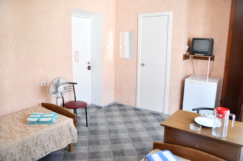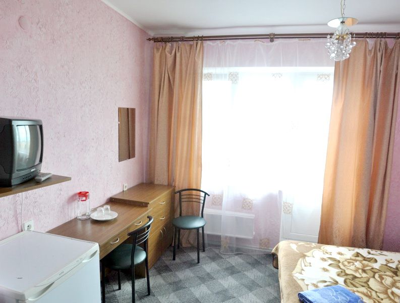 Однокомнатный номер (рассчитан на одного человека или семейную пару), 2х-спальная кровать, холодильник, TV, санузел, площадь 11 кв.м.